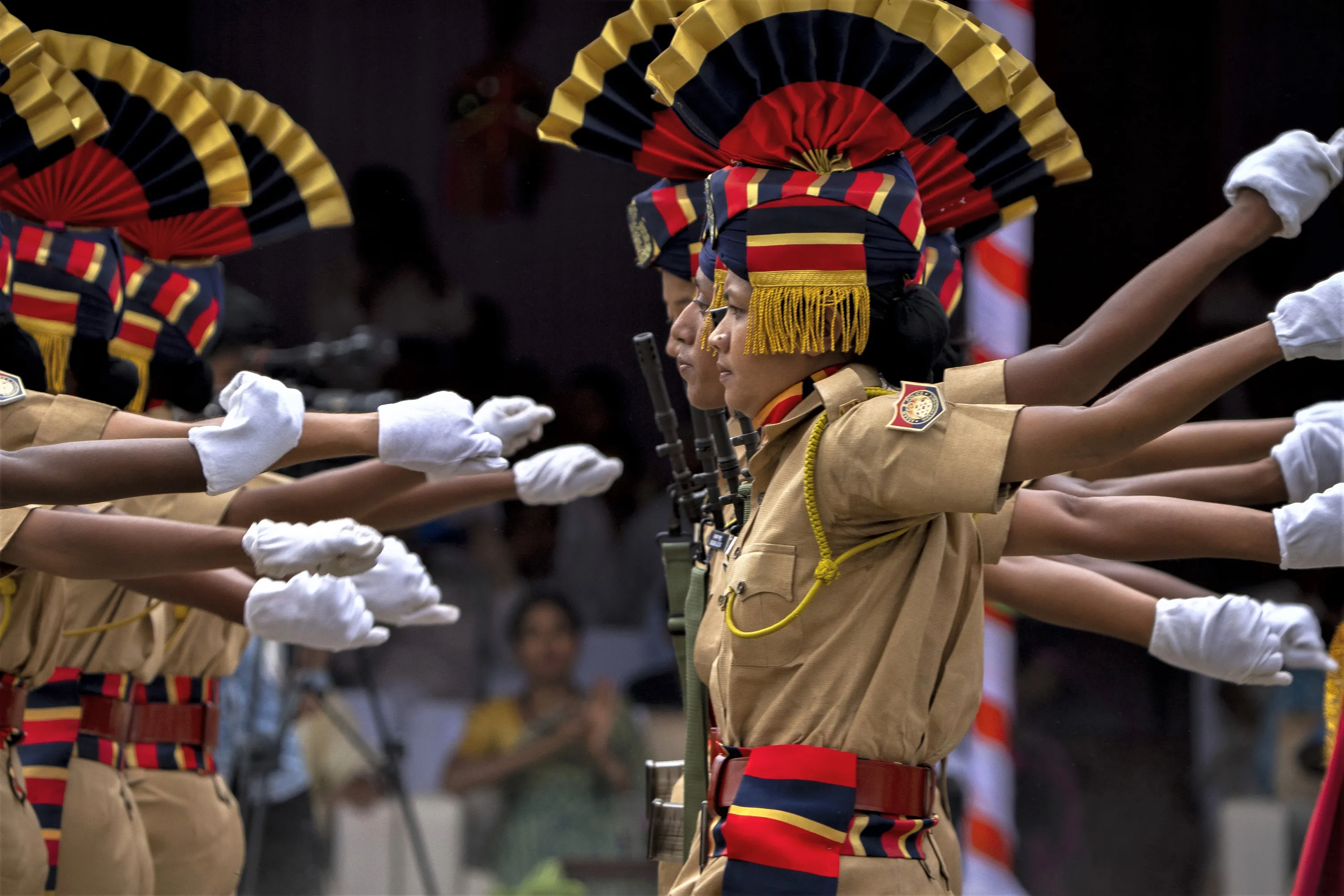 Assam Police women personnel take part in a parade during India's Independence Day celebrations in Guwahati, India, Tuesday, August 15, 2023. (Photo by Anupam Nath/AP Photo)