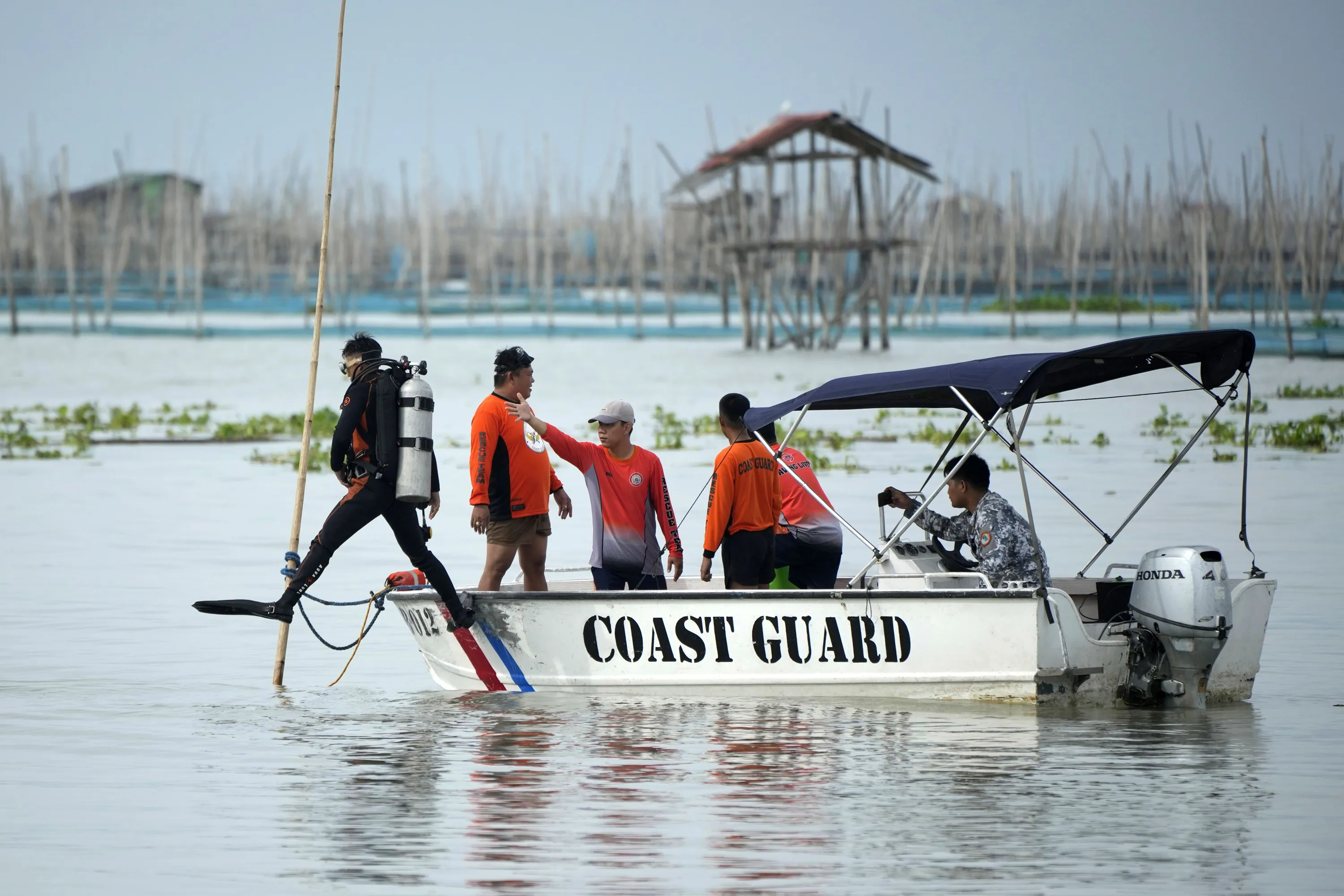 Rescuers search for victims of a capsized passenger boat in Rizal, Philippines, Friday, July 28, 2023. A ferry turned upside down when passengers suddenly crowded to one side in panic as fierce winds pummeled the wooden vessel, killing a number of people, officials said Friday. (Photo by Aaron Favila/AP Photo)