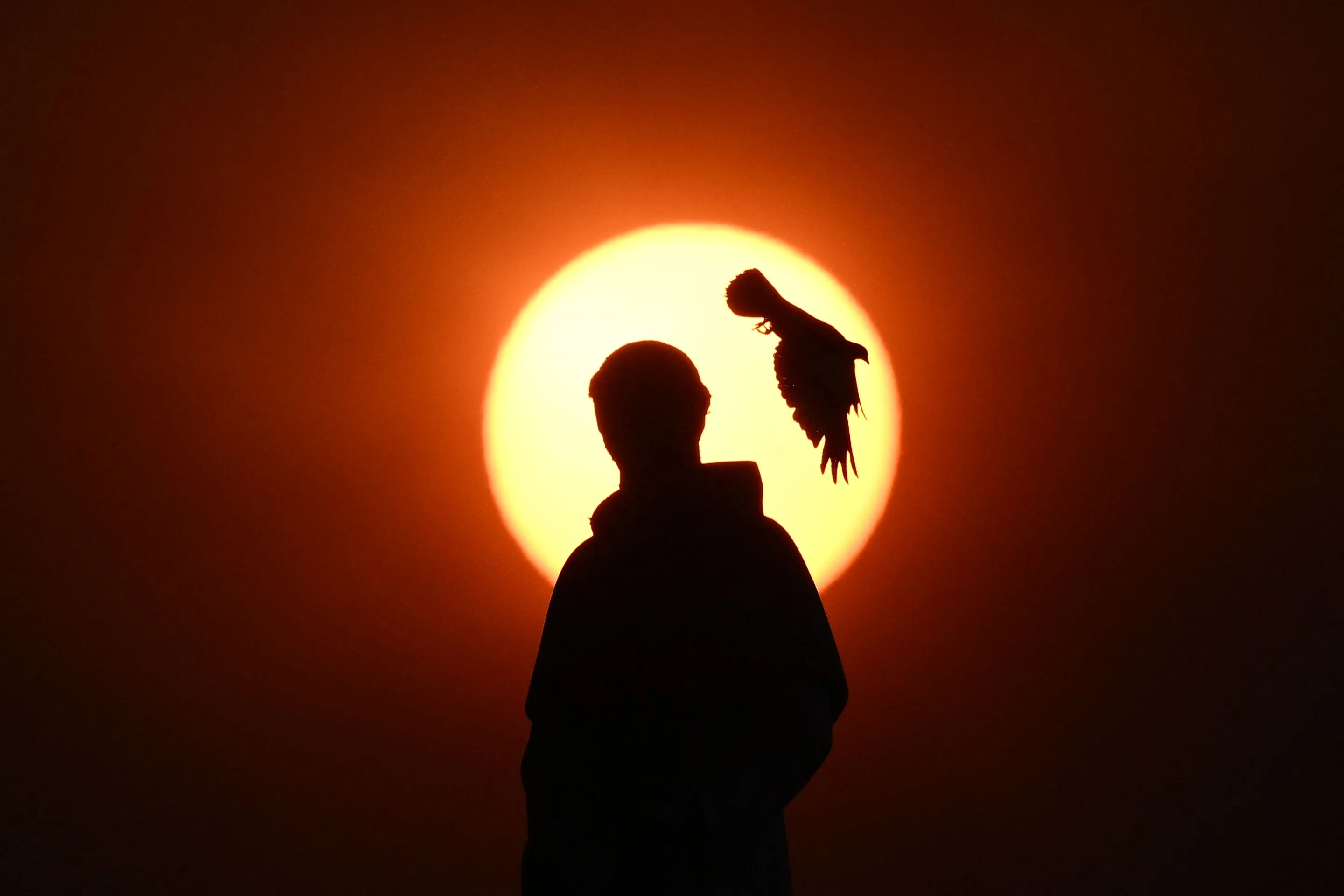 A pigeon flies close to a statue in the Sanctuary of Our Lady of Fatima at daybreak in Fatima, before the visit of Pope Francis, on August 5, 2023. Around one million pilgrims from all over the world will attend the World Youth Day, the largest Catholic gathering in the world, created in 1986 by John Paul II. (Photo by Marco Bertorello/AFP Photo)