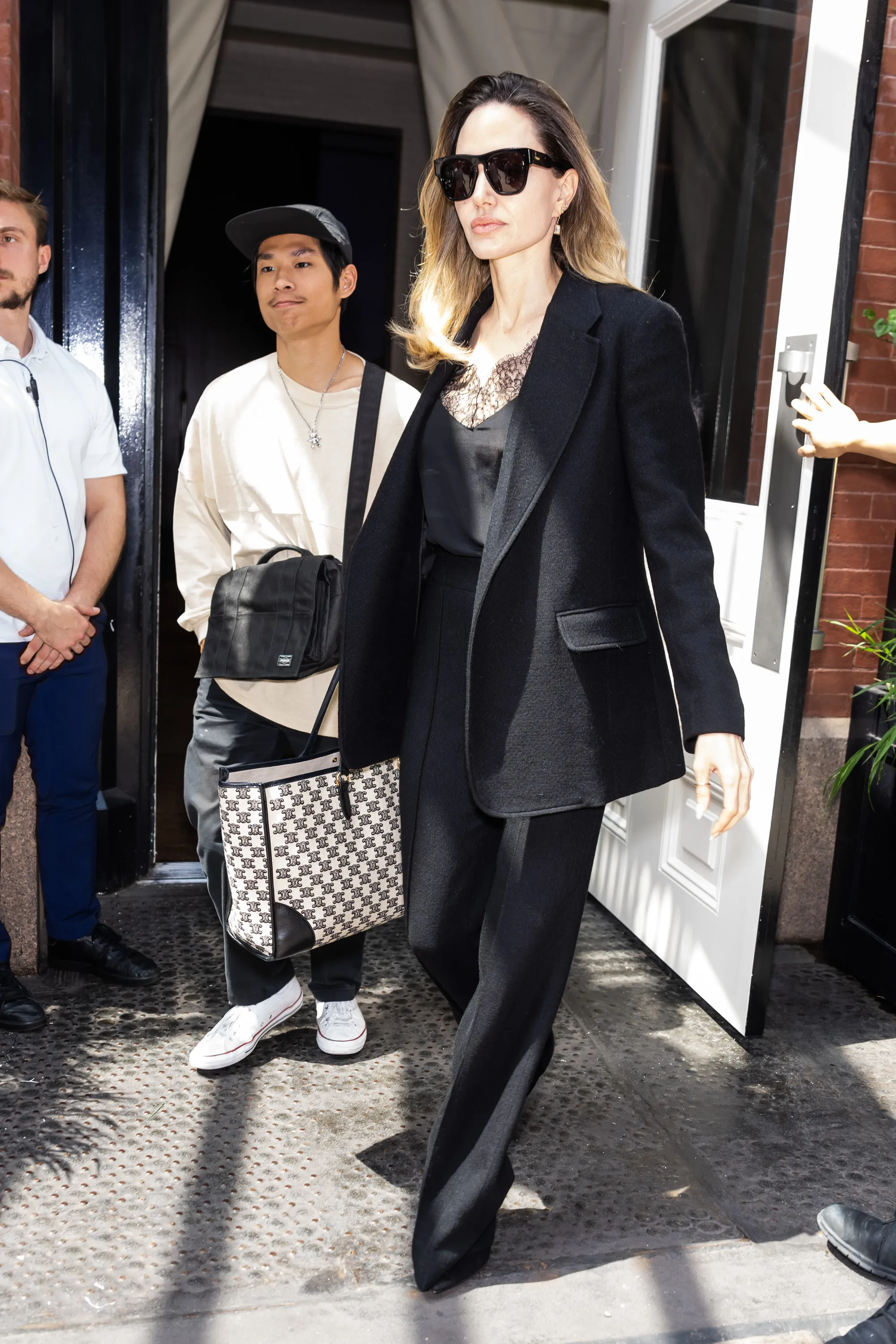 Pax Jolie-Pitt and American actress Angelina Jolie are seen in SoHo on August 16, 2023 in New York City. (Photo by Gotham/GC Images)