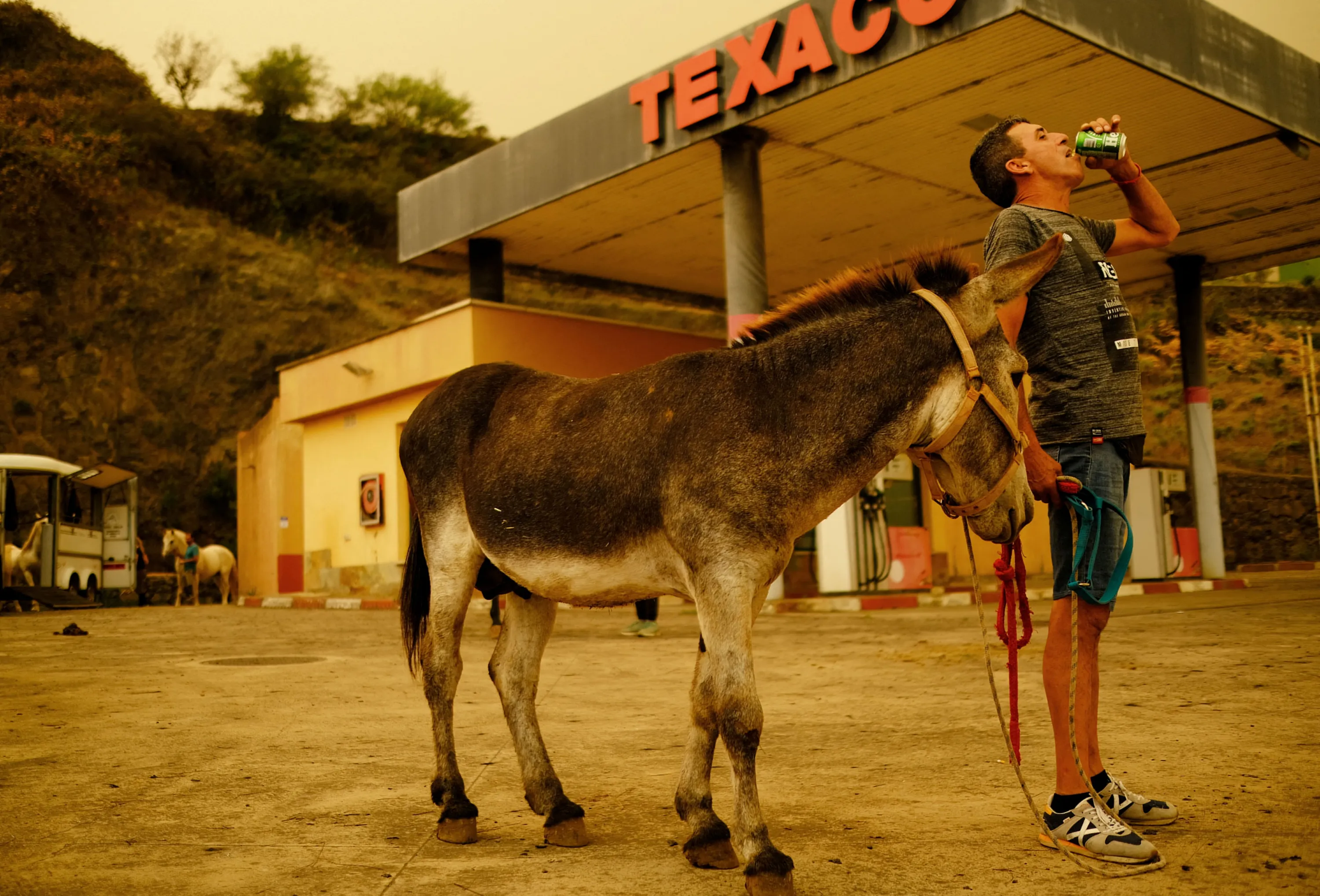 Valerio, 38, rescues a donkey in the village of Benijos, as wildfires rage out of control on the island of Tenerife, Canary Islands, Spain on August 19, 2023. (Photo by Nacho Doce/Reuters)