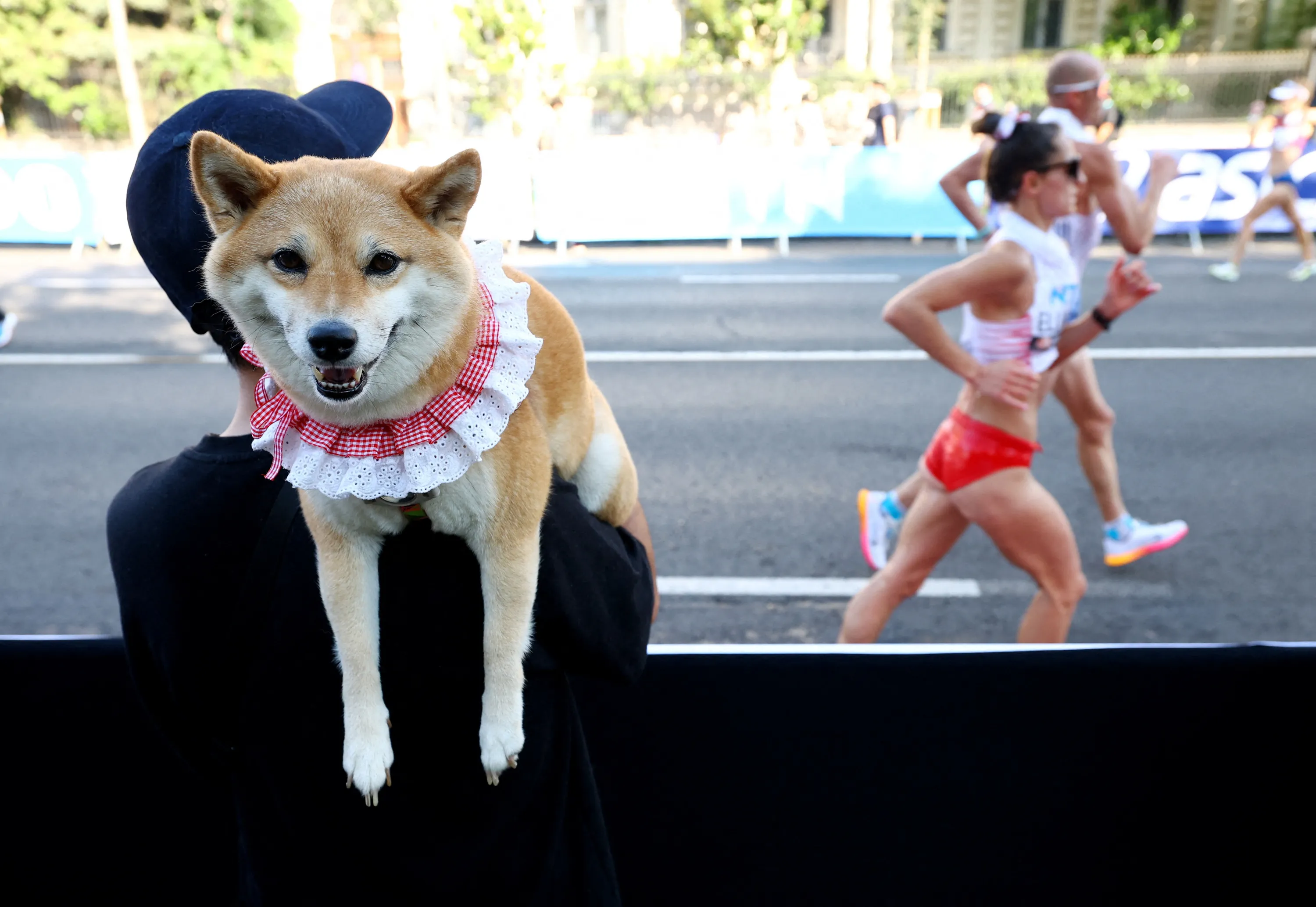 A dog is seen during the women's 35k race walk final during the World Athletics Championships in Budapest on August 24, 2023. (Photo by Bernadett Szabo/Reuters)