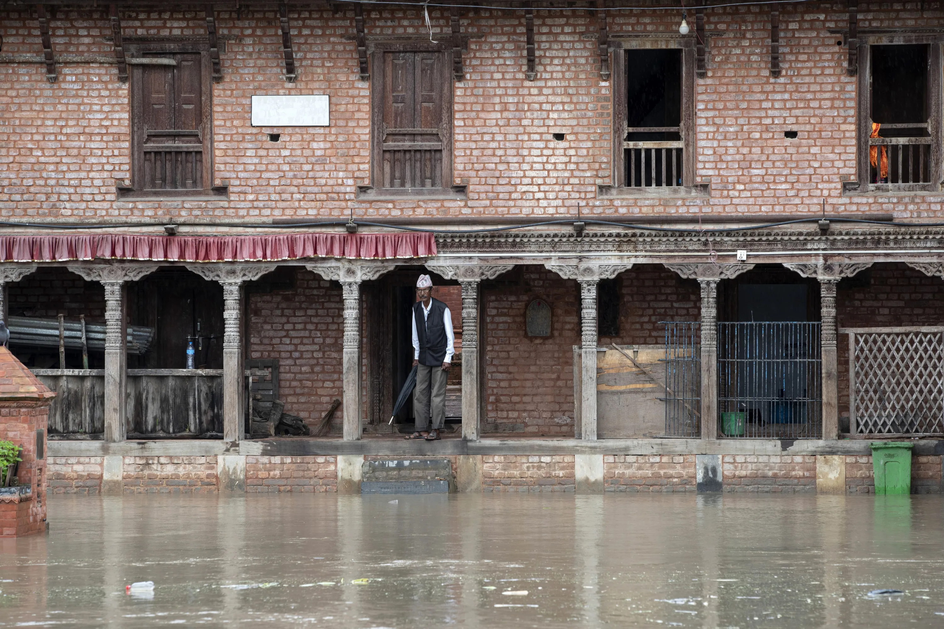 The temples area is flooded as Hanumante River rises following torrential rains in Bhaktapur, Nepal, 08 August 2023. Nepal's Department of Hydrology and Meteorology warned of heavy monsoon rains that put several parts of the country at risk of floods and landslides. According to the statement issued by Nepal's Home Ministry on 08 August, at least 38 people have died in monsoon related disasters since mid June 2023. (Photo by Narendra Shrestha/EPA)