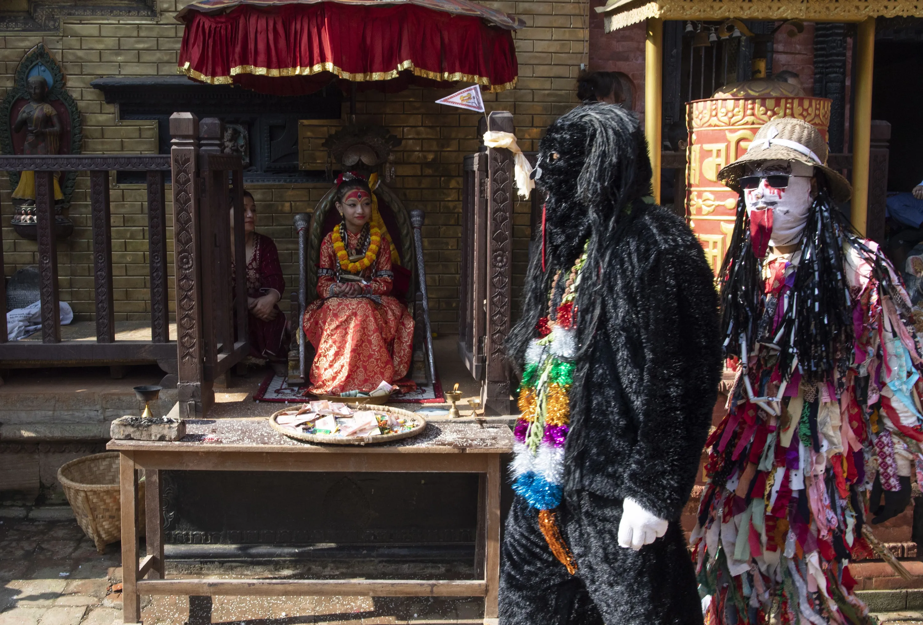Nepalese devotees wearing traditional attire take part in a procession of the Mataya festival as they visit Kumari the Living goddess, at Ratnakar Mahavihar in Patan, Nepal, 01 September 2023. The Mataya festival is celebrated by the Buddhist community in order to wish for peace for family members who have passed away in the last year. (Photo by Narendra Shrestha/EPA)