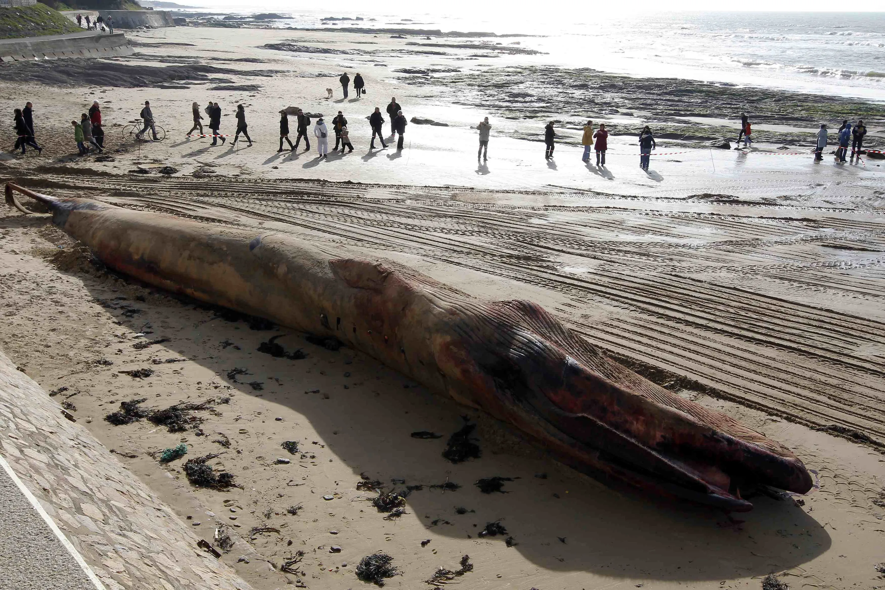 People look at a 18 meter long deceased whale which was discovered on the beach early this morning in Les Sables d'Olonne, western France, January 25, 2013. (Photo by Stephane Mahe/Reuters)