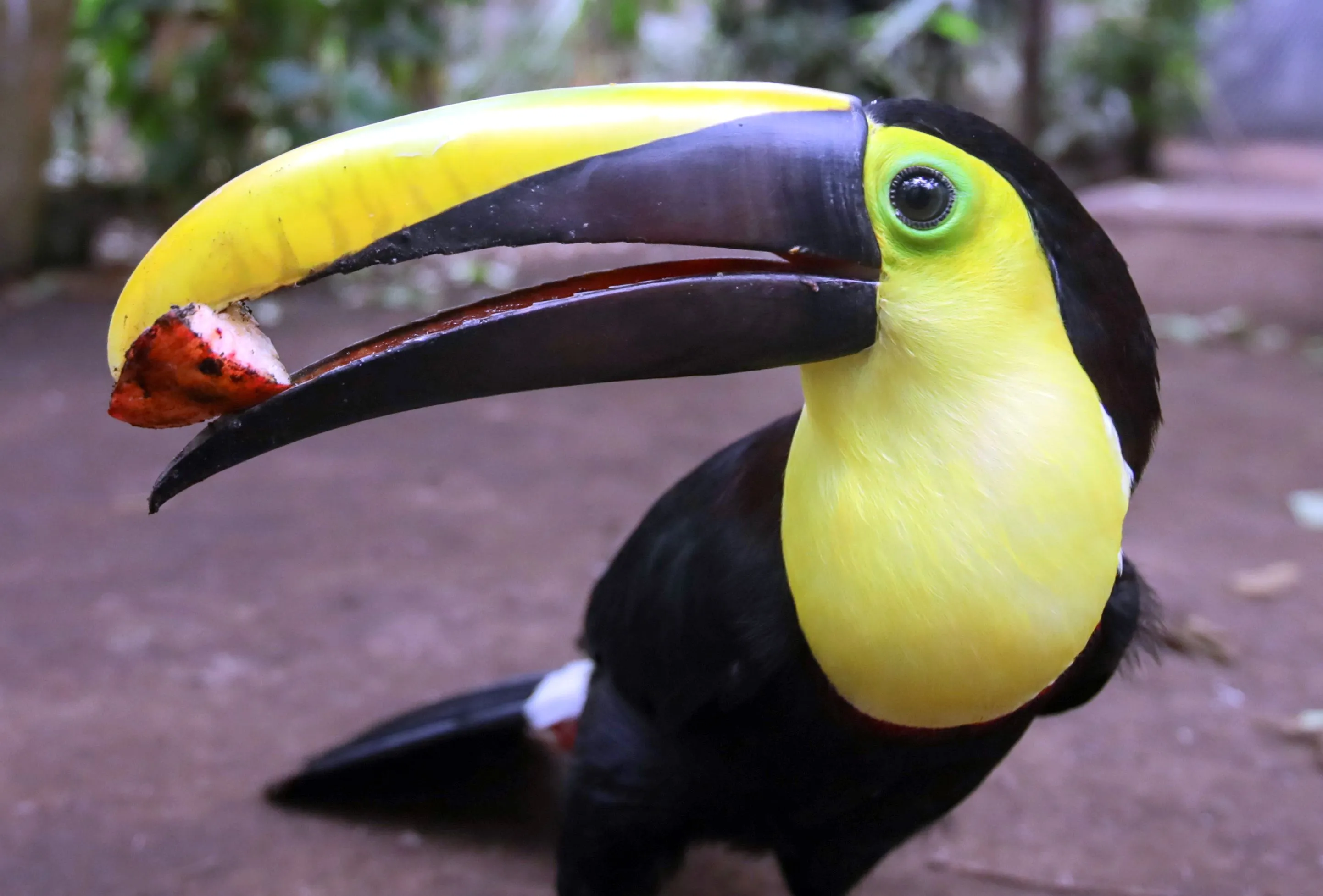 A Yellow-Throated Toucan, also known as 'Ramphastos Ambiguus', rescued from illegal trafficking is seen in the La Reserva Bio Park in Cota, Cundinamarca on August 17, 2023. Colombia's Bioparque La Reserva is a vital sanctuary for endangered animals harmed by illegal trafficking. Focused on rehabilitation and conservation, the park offers hope and protection for these creatures at the brink of extinction. Through mimicry of natural habitats, the park fosters healing and reproduction, embodying the fight against wildlife trade and habitat loss. (Photo by Juancho Torres/Anadolu Agency via Getty Images)