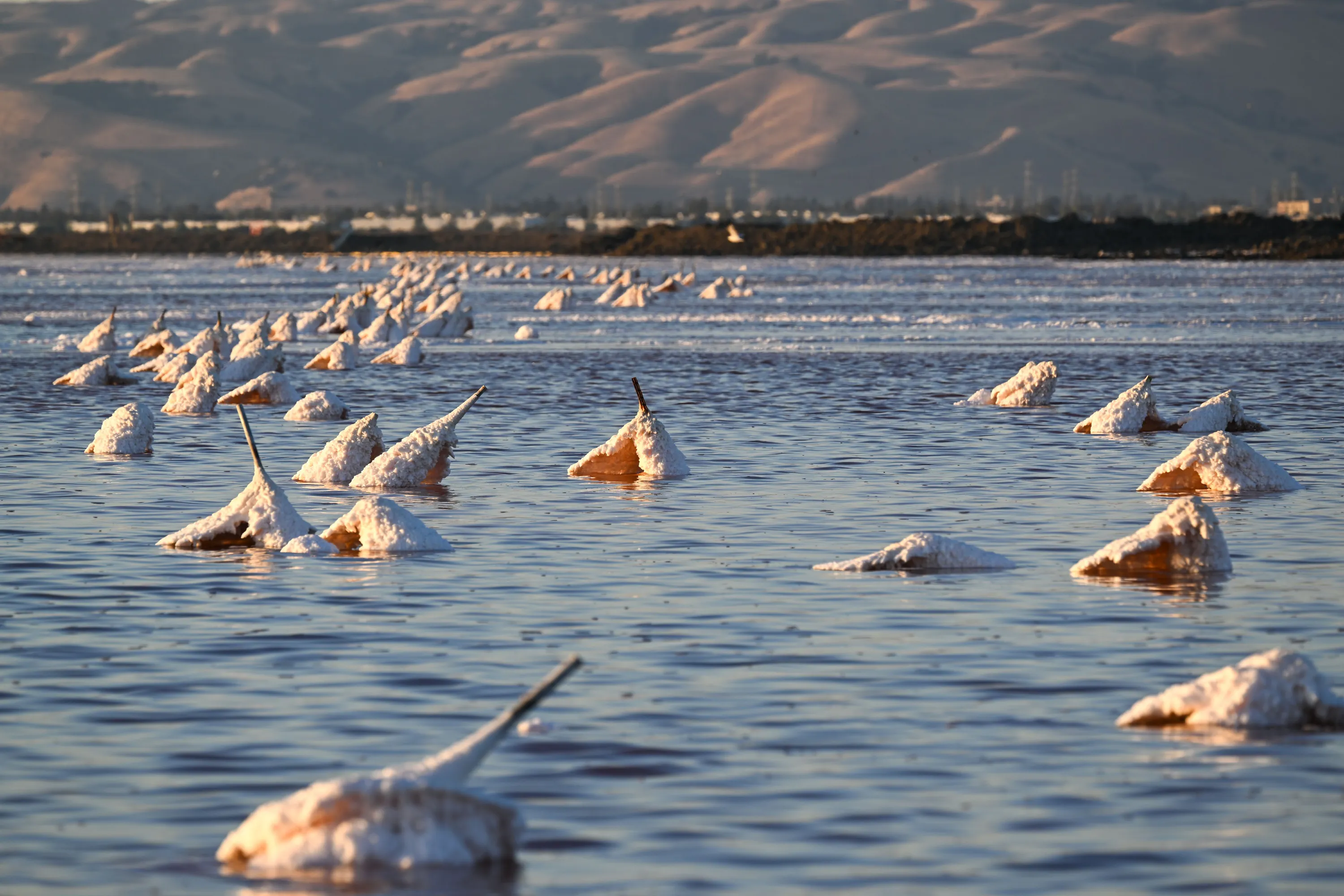 A view of salt pond of Alviso Marina County Park that located in the San Francisco Bay during sunset in San Jose, United States on September 7, 2023. (Photo by Tayfun Coskun/Anadolu Agency via Getty Images)
