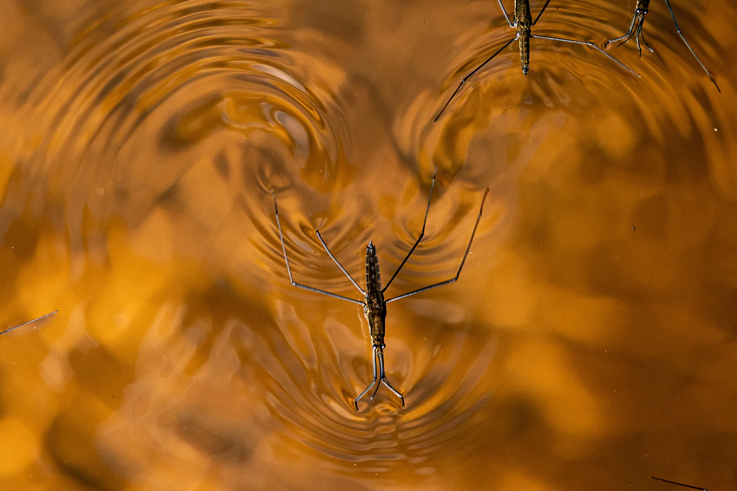 Pond skater insects thrive on the River Aller on National Trust Holnicote Estate, Exmoor, Somerset on Wednesday, September 13, 2023, where the very first attempt at scale to create a more natural, diverse and resilient wetland and landscape in the UK will help tackle impacts of climate change such as flooding and drought. (Photo by Ben Birchall/PA Images via Getty Images)