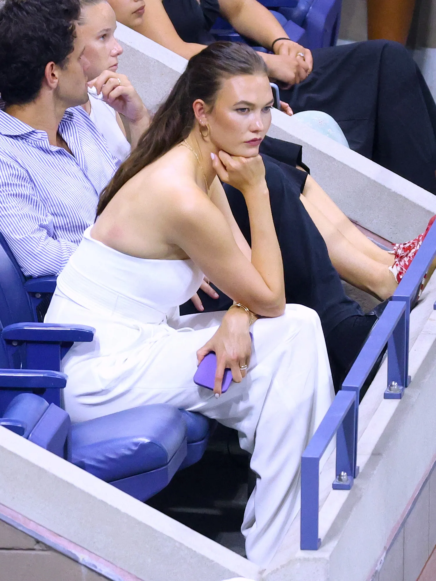 Model Karlie Kloss with her husband Joshua Kushner attend the quarter final between Alcaraz and Zverev at The US Open in New York on September 6, 2023. (Photo by Dylan Travis/AbacaPress)