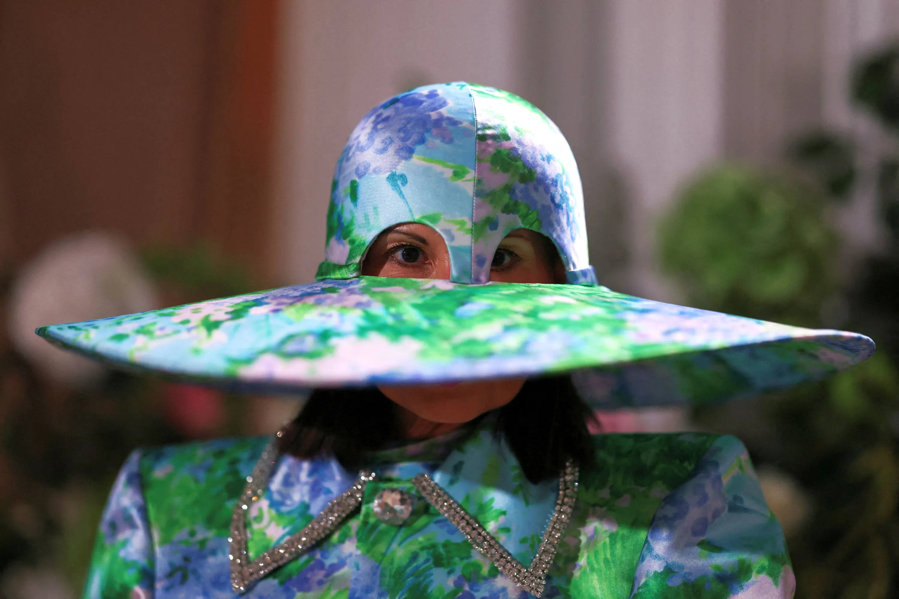 A guest attends the Richard Quinn catwalk show during London Fashion Week in London, Britain on September 16, 2023. (Photo by Hollie Adams/Reuters)