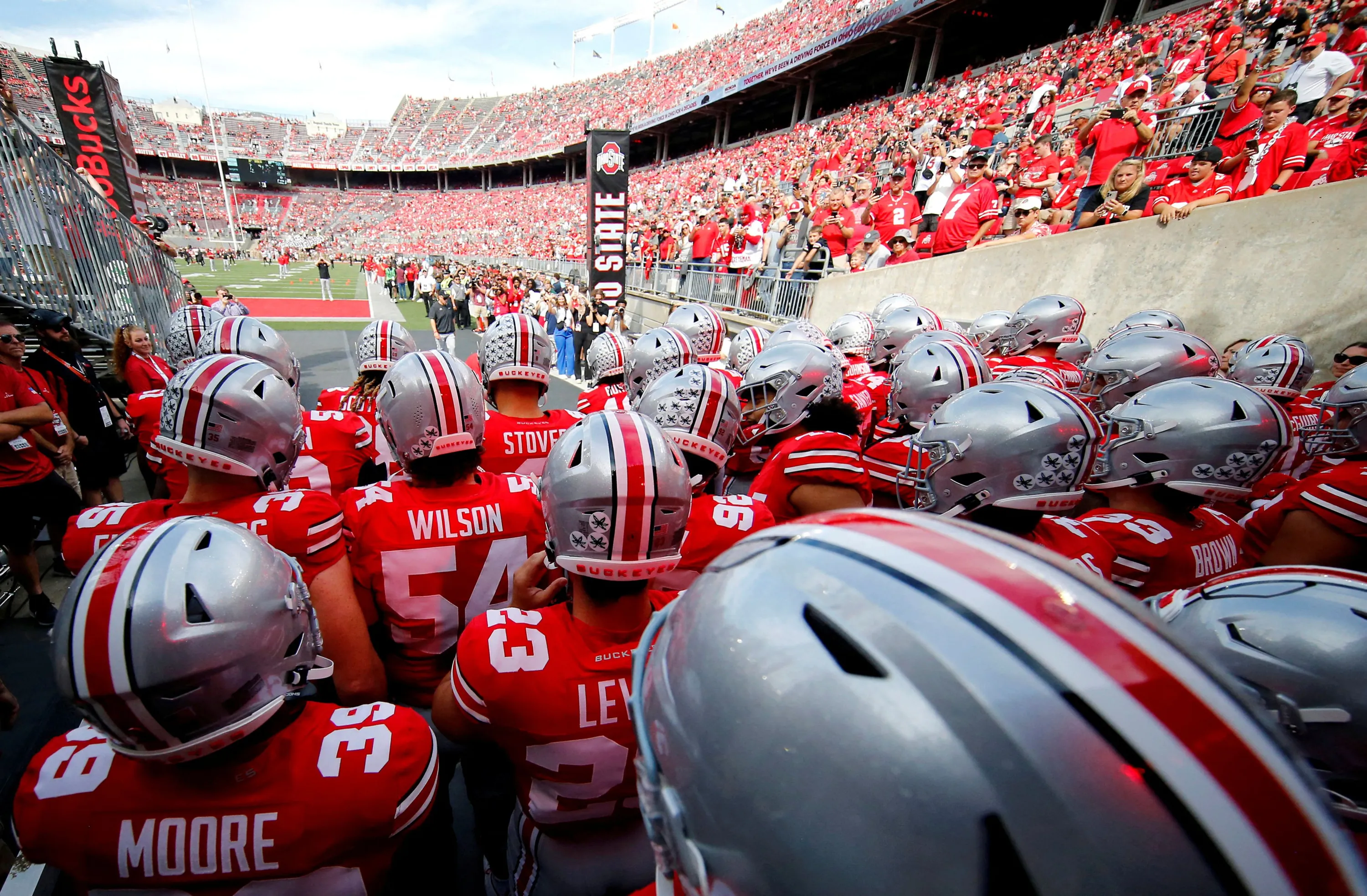 The Ohio State Buckeyes take the field before the game against the Western Kentucky Hilltoppers at Ohio Stadium in Columbus, Ohio on September 16, 2023. (Photo by Joseph Maiorana/USA TODAY Sports)