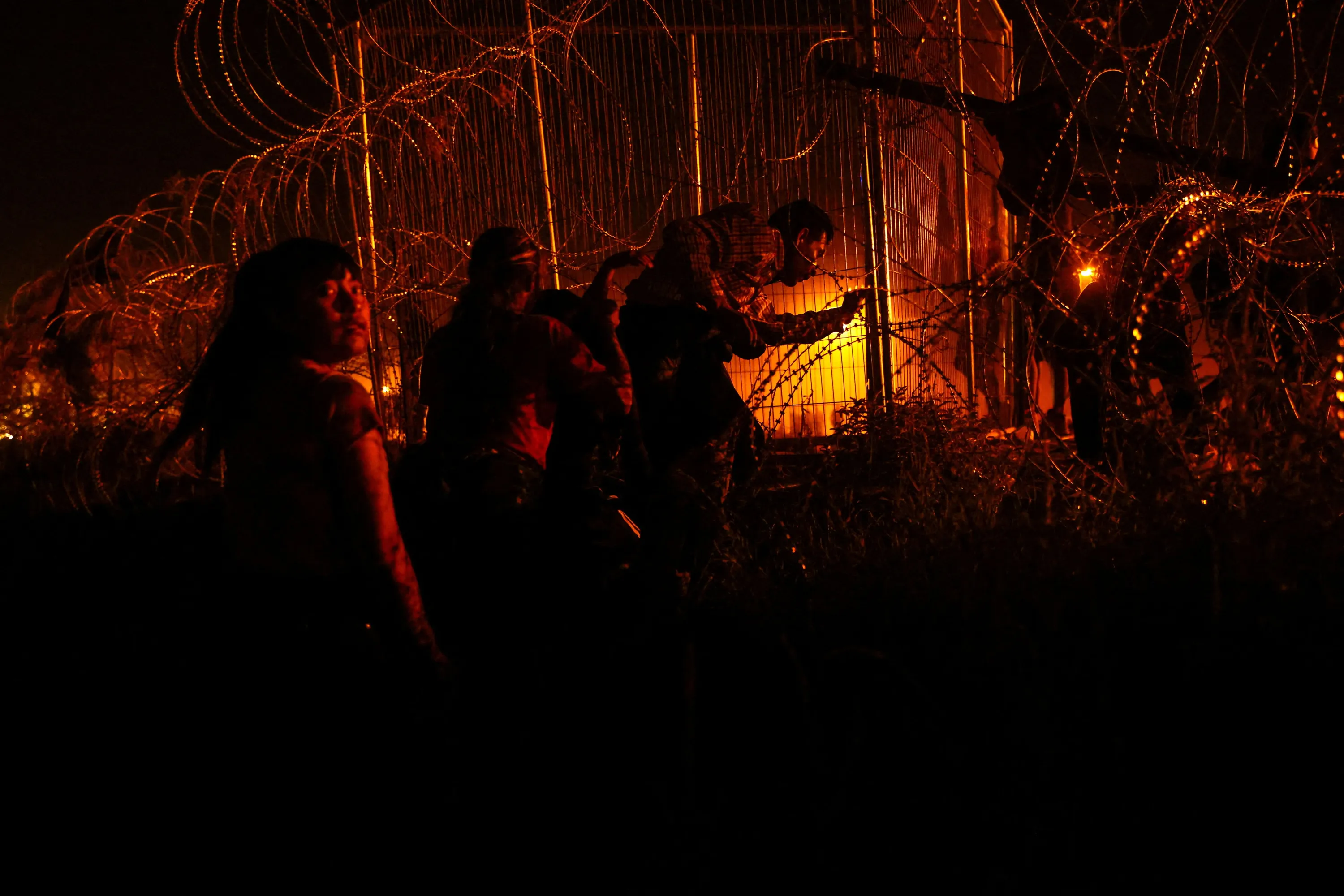 Migrants from Guatemala cross a wire fence after crossing the Rio Bravo river with the intention of turning themselves in to the U.S. Border Patrol agents to request asylum, in El Paso, Texas, U.S. September 22, 2023. (Photo by Jose Luis Gonzalez/Reuters)