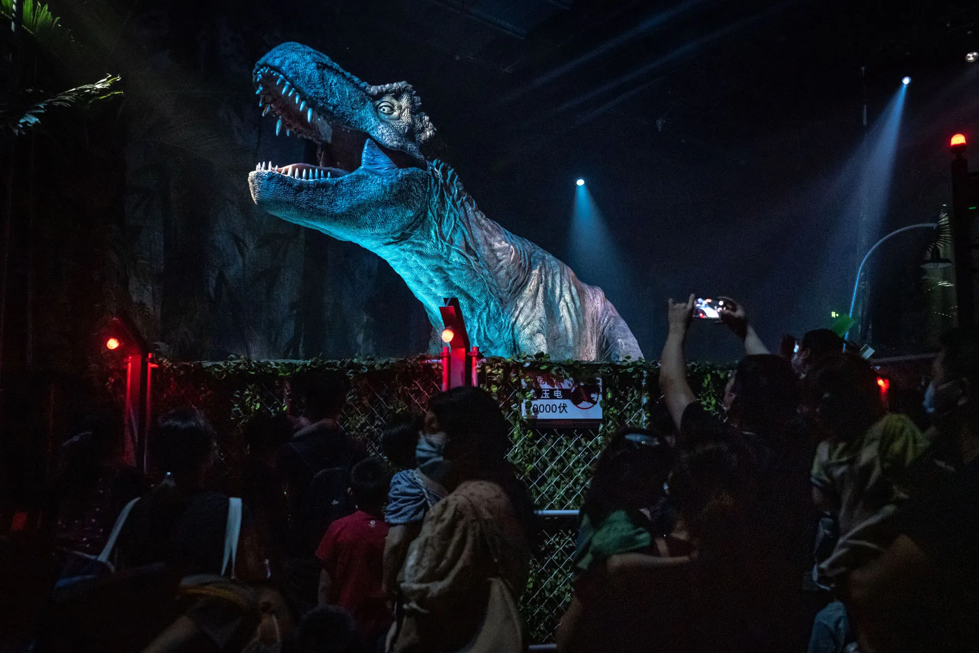 Dinosaur model tyrannosaurus rex is being displayed in the Jurassic World Film Exhibition on June 25, 2022 in Guangzhou, Guangdong Province of China. (Photo by Stringer/Anadolu Agency via Getty Images)
