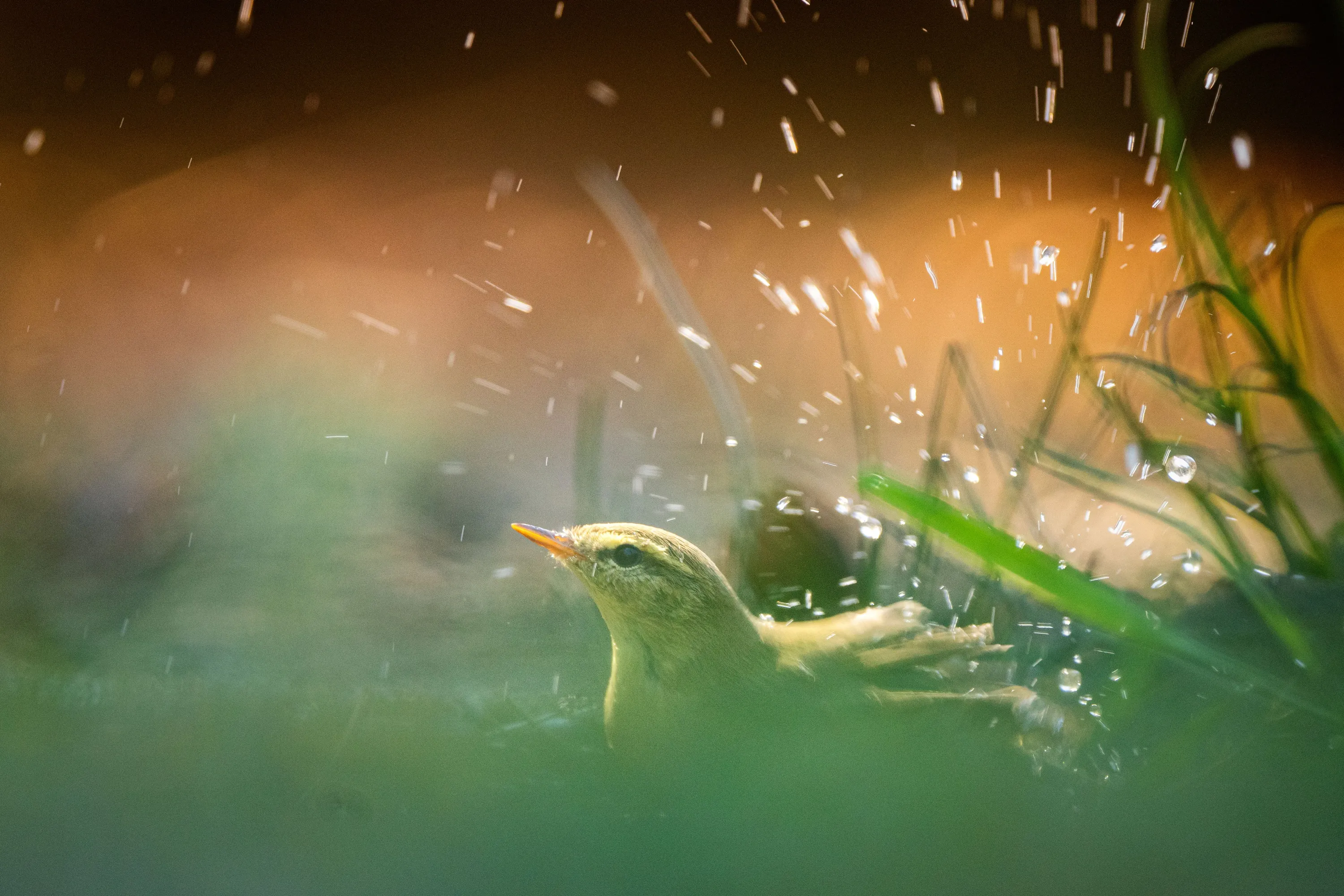 A Willow warbler (Phylloscopus trochilus) is seen near a body of water that wild animals share due to a lack of water sources in the area in Bursa, Turkiye on September 19, 2023. (Photo by Alper Tuydes/Anadolu Agency via Getty Images)