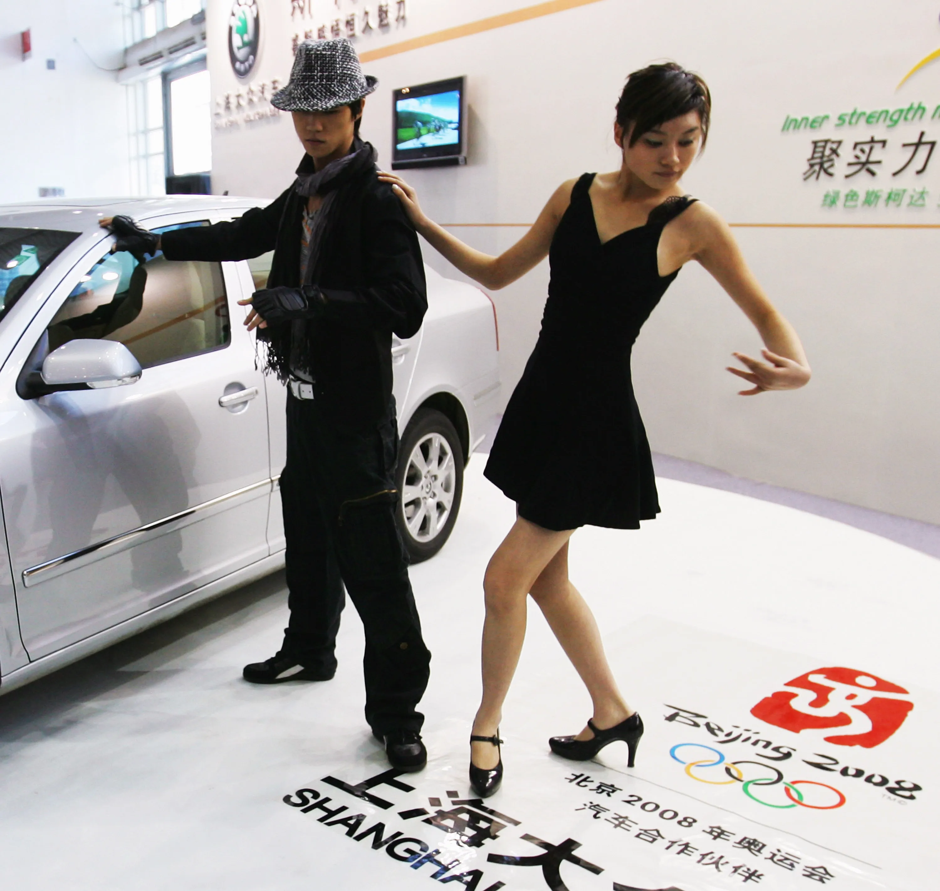 Chinese models promote a joint venture car at Auto Exhibit Trade Show of Beijing in Beijing, China. (Photo by Guang Niu)