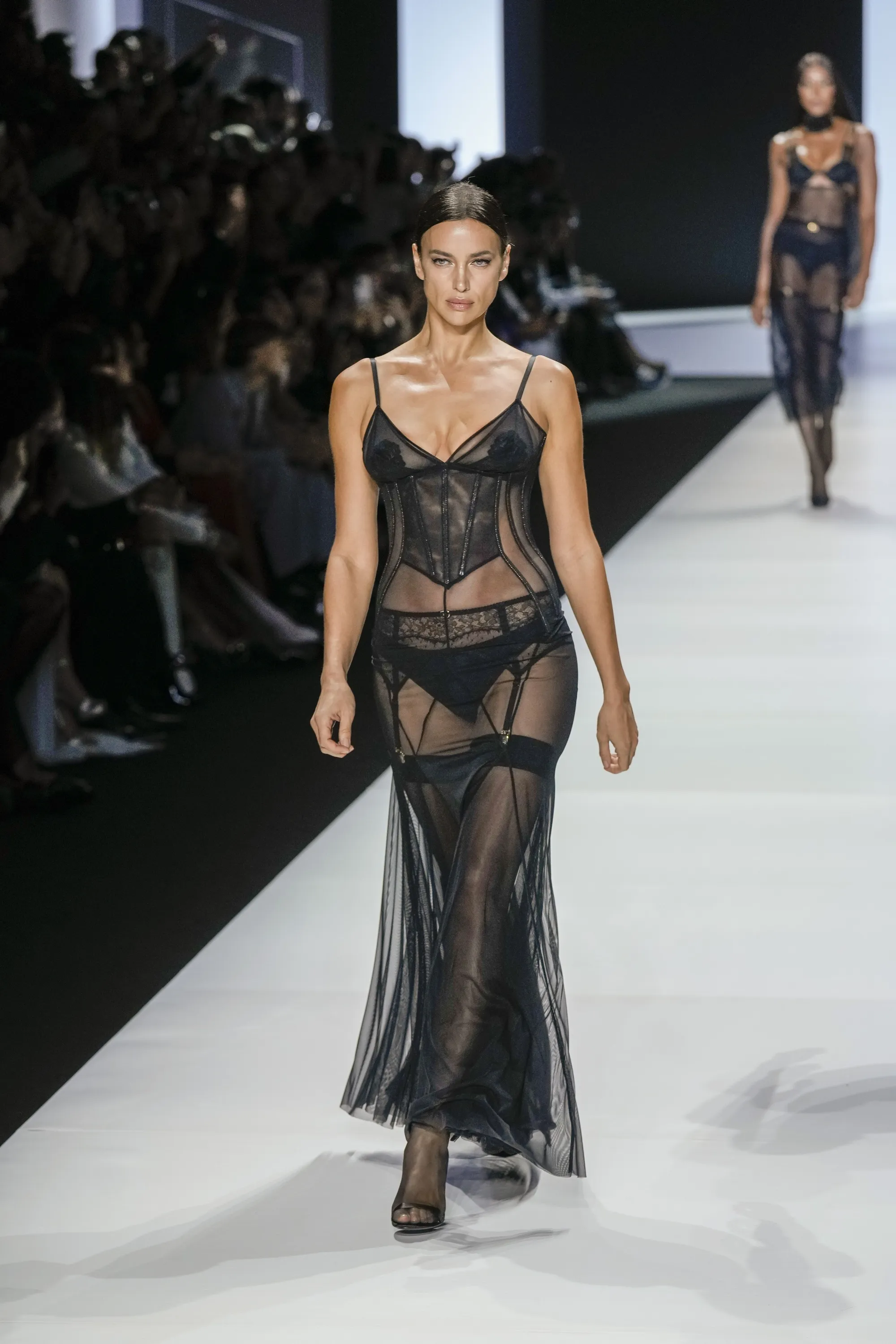 Russian model Irina Shayk wears a creation as part of the Dolce & Gabbana women's Spring Summer 2024 collection presented in Milan, Italy, Saturday, September 23, 2023. (Photo by Antonio Calanni/AP Photo)