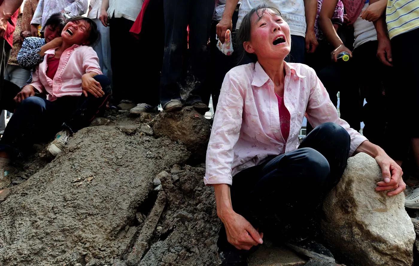 Relatives grieve the loss of a loved one, pulled out from the mud and rubble of the devastating landslide in Zhouqu in northwest China's Gansu province. (Photo by Frederic J. Brown/AFP Photo)