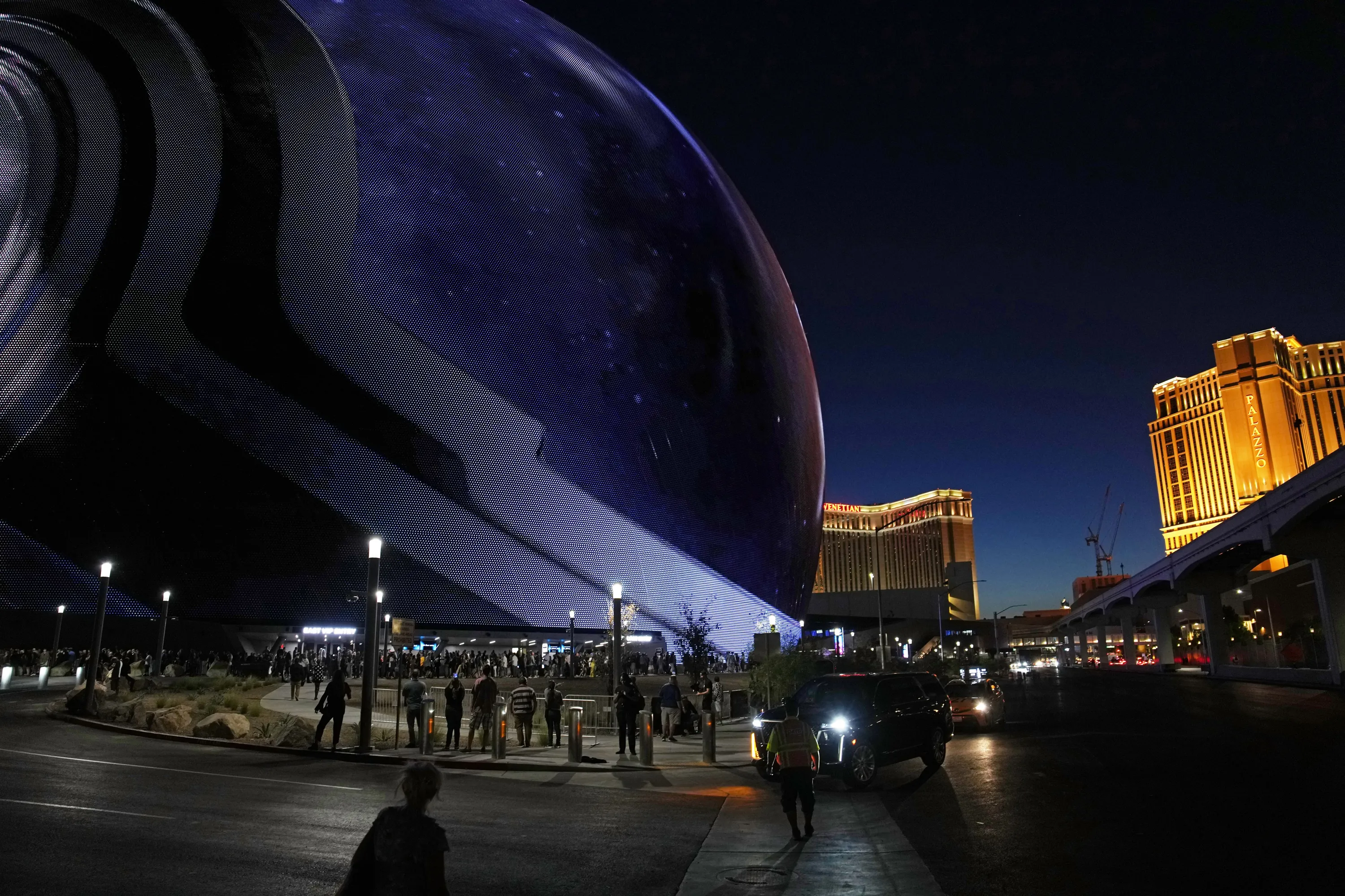 People arrive during the opening night of the Sphere, Friday, September 29, 2023, in Las Vegas. (Photo by John Locher/AP Photo)