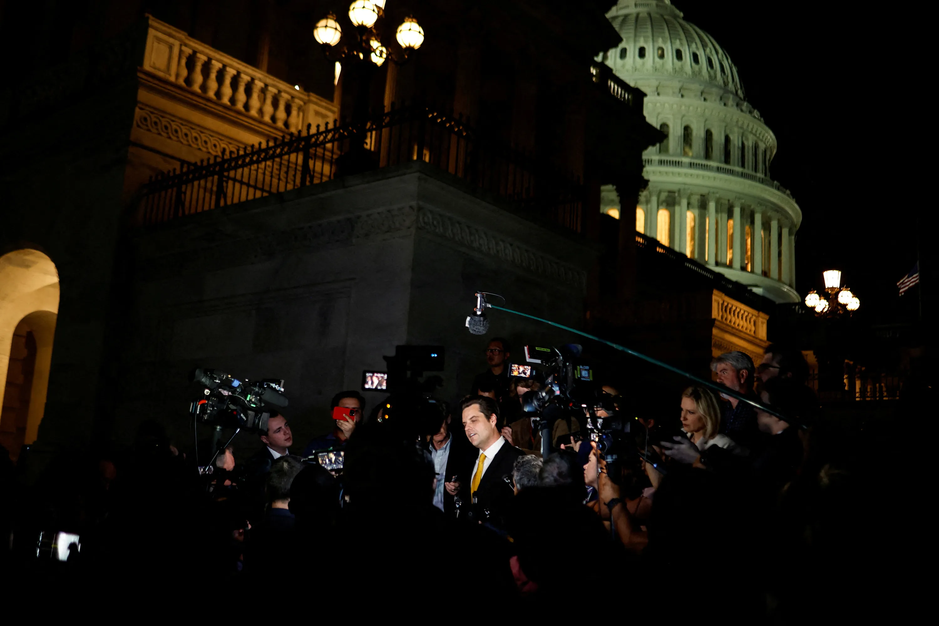 U.S. Representative Matt Gaetz (R-FL) speaks with reporters after filing a motion to vacate – an attempt to oust House Speaker Kevin McCarthy (R-CA) – as he departs the U.S. Capitol in Washington, U.S. October 2, 2023. (Photo by Jonathan Ernst/Reuters)