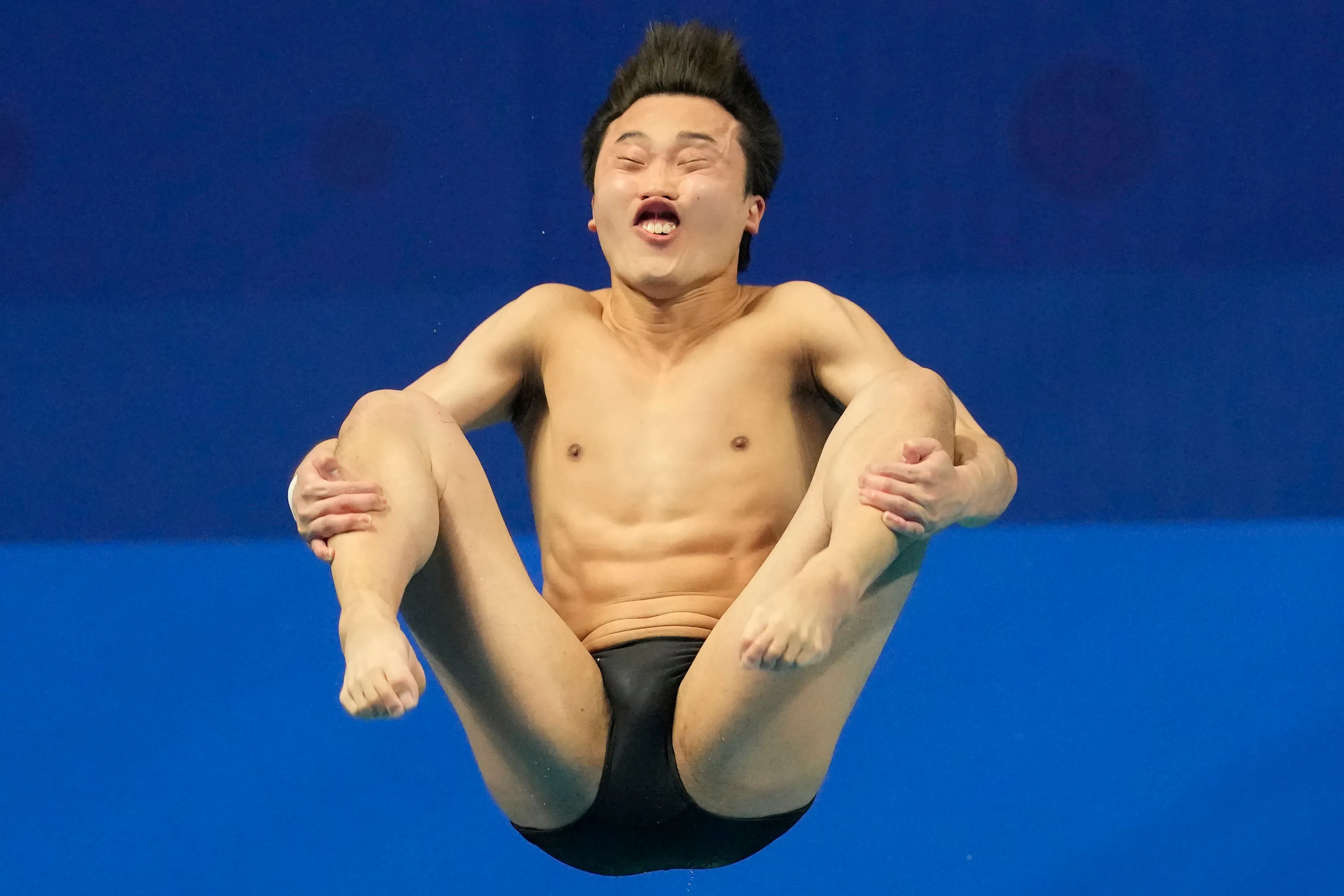 South Korea's Woo Haram competes in the Diving Men's 3m Springboard Final during the 19th Asian Games in Hangzhou, China, Tuesday, October 3, 2023. (Photo by Aaron Favila/AP Photo)