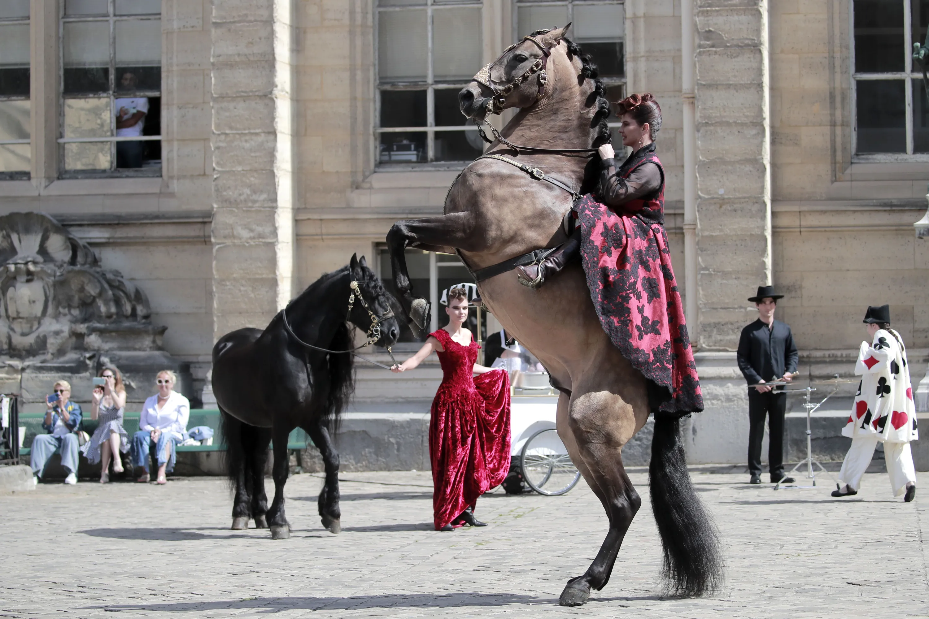 A model, center, wears a creation for Franck Sorbier's Haute Couture Fall/Winter 2022-2023 fashion collection presented Wednesday, July 6, 2022 in Paris. (Photo by Lewis Joly/AP Photo)