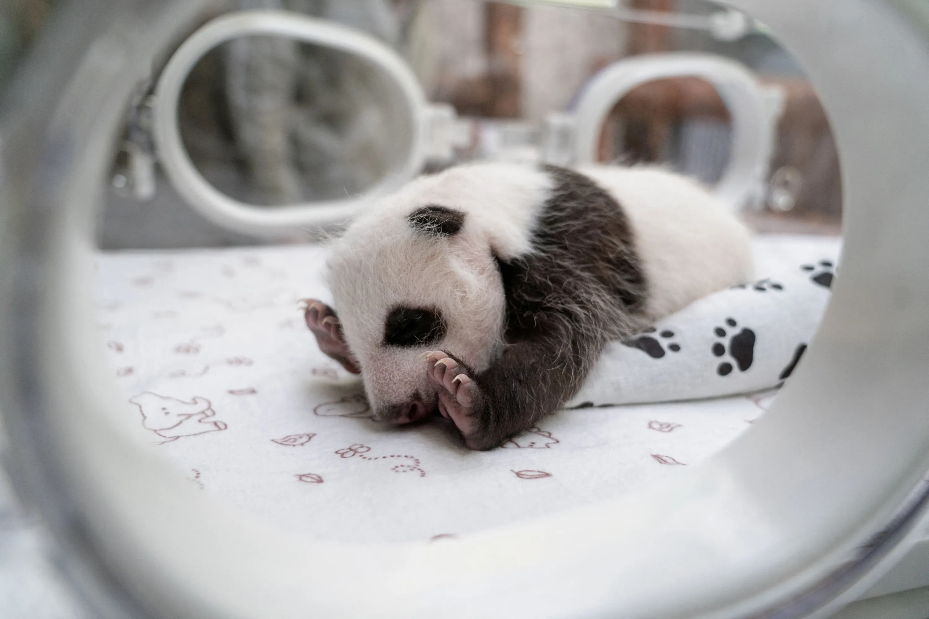 A one-month-old female giant panda cub lies in an incubator at the Moscow Zoo in the capital Moscow, Russia, in this picture released September 25, 2023. The cub's parents, female giant panda Ding Ding and male giant panda Ru Yi, were lent by China to the Moscow Zoo in 2019 for 15 years as part of a joint research project. (Photo by Moscow Zoo/Handout via Reuters)