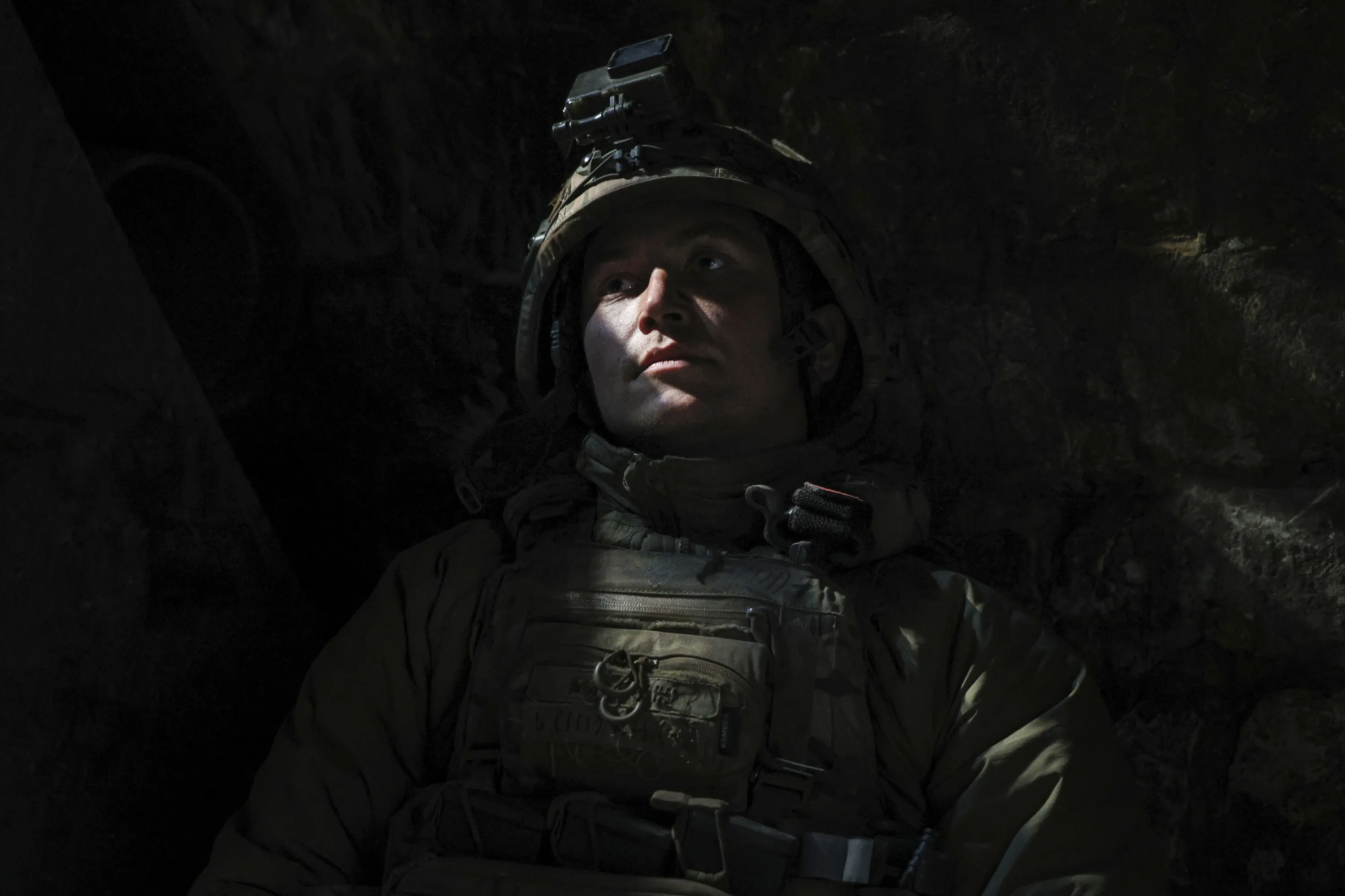 A Ukrainian serviceman from the 3rd Assault Brigade, aka Bogun, takes cover in a bunker at the frontline in Andriivka, Donetsk region, Ukraine, Saturday, September 16, 2023. (Photo by Alex Babenko/AP Photo)