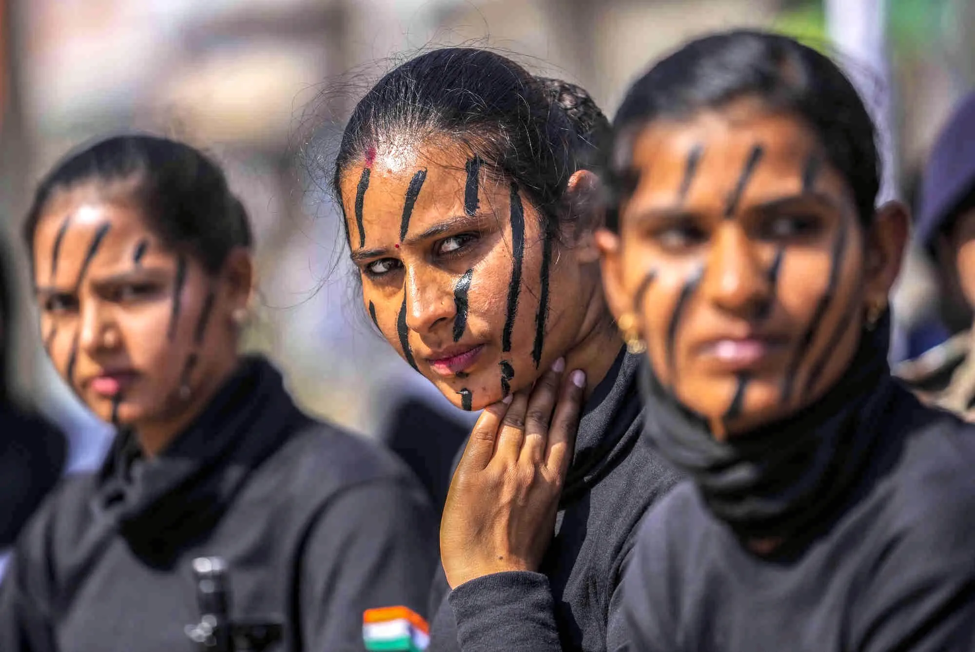 Central Reserve Police Force (CRPF) commandoes gather before the start of a bike rally to Gujarat, in Srinagar, Indian controlled Kashmir, Tuesday, October 3, 2023. The cross-country bike expedition, with 150 women CRPF officers participating, starts in Kashmir and will pass through different regions of India and culminate in Gujarat on Oct. 31 to mark the birth anniversary of Sardar Patel. (Photo by Mukhtar Khan/AP Photo)