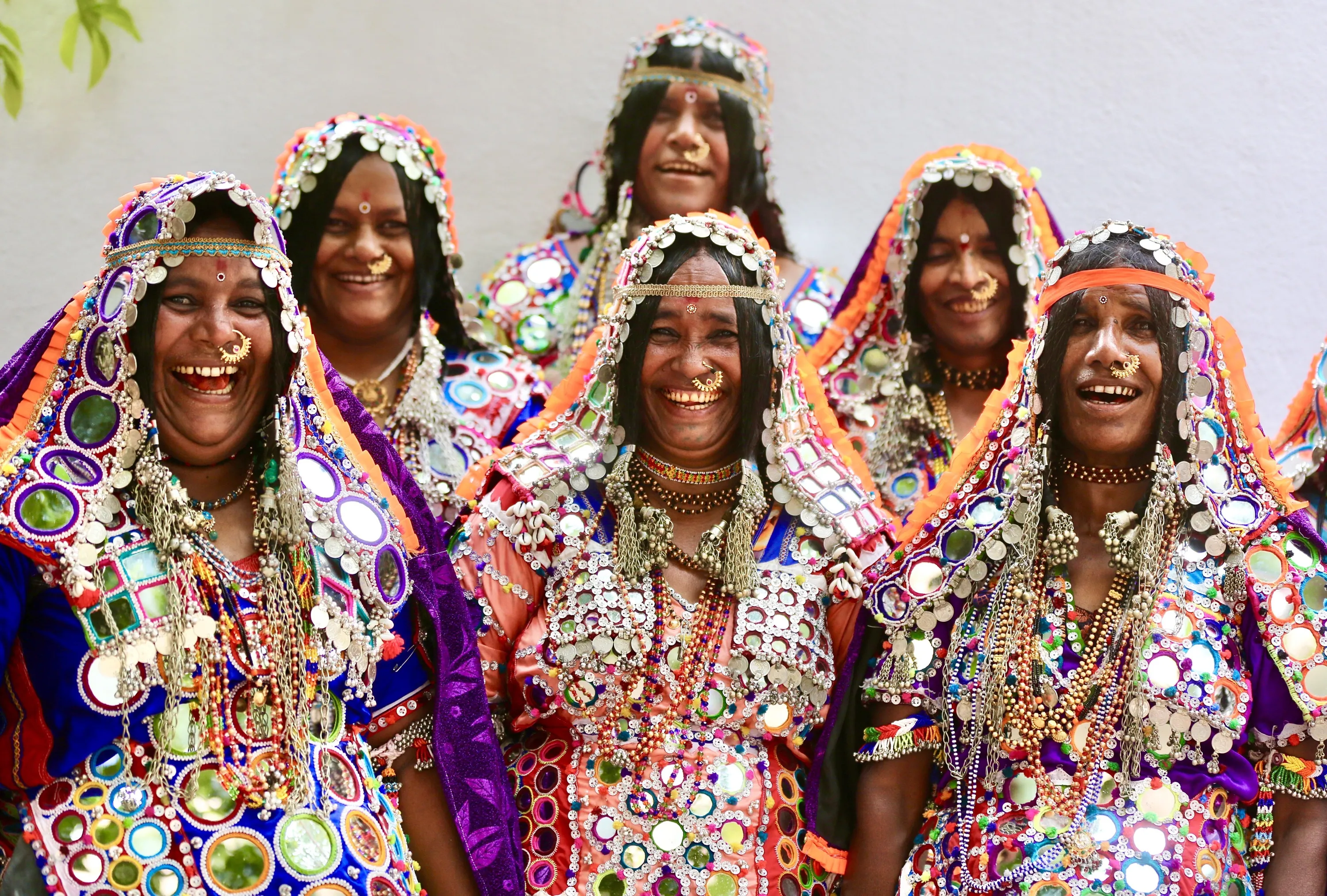 Banjara tribal women wearing colourful “ghaghra” and “choli” (a blouse) pose for photos before cultural event in Bangalore, India, 04 October 2023. Banjara's tribal people are innumerable nomadic tribes are found in Andhra Pradesh, Bihar, Madhya Pradesh, Himachal Pradesh, Gujarat, Tamil Nadu, Maharashtra, Karnataka, Odisha and West Bengal wandering from one place to another. Over hundreds of Banjara community tribal people gathered to discuss various issues regarding economic, education, social and political status in the society. (Photo by Jagadeesh N.V./EPA/EFE)