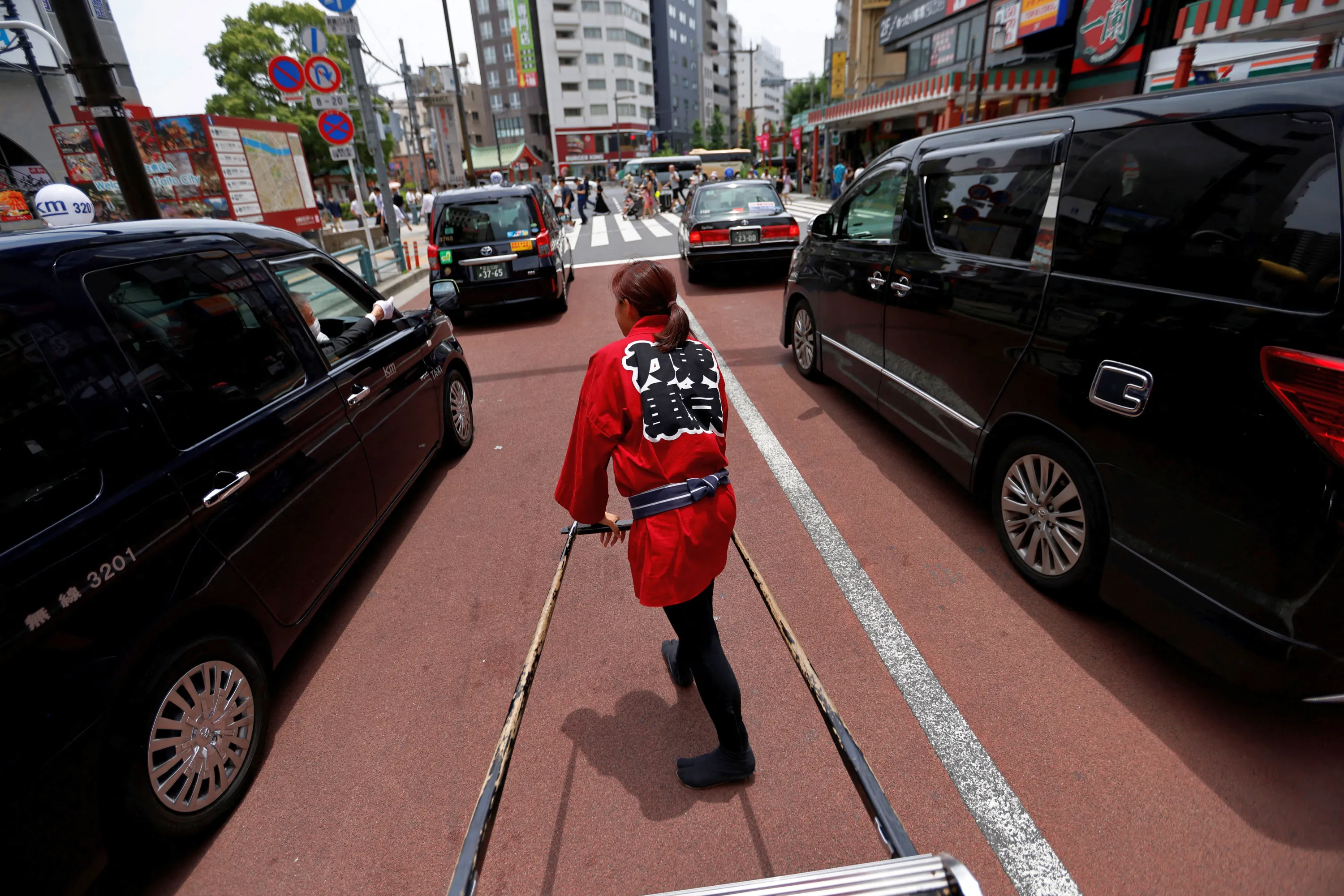 Rickshaw puller Misato Otoshi, 30, drives a rickshaw around Asakusa district in Tokyo, Japan on June 21, 2023. (Photo by Issei Kato/Reuters)