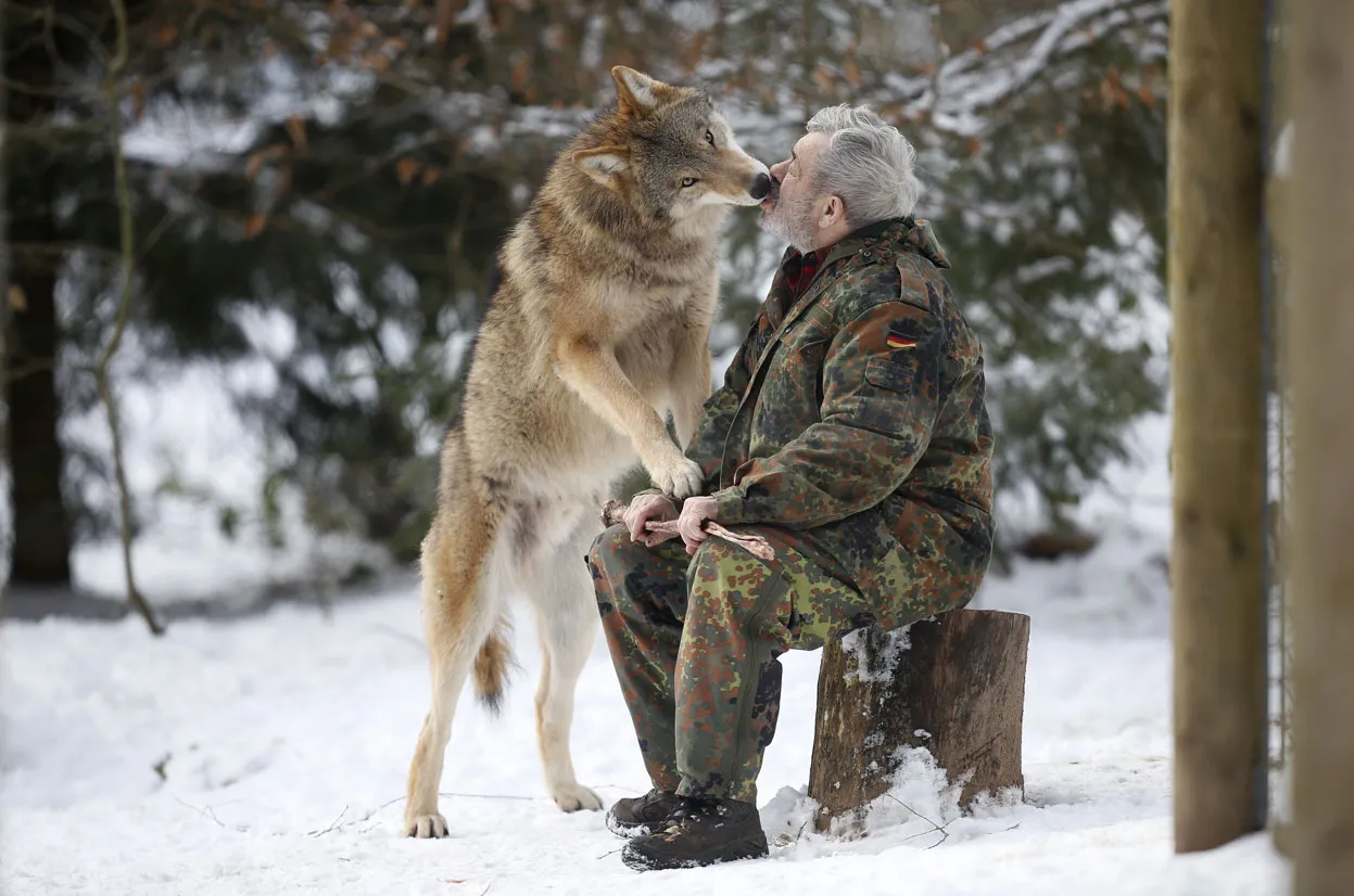Wolfspark Werner Freund is a wolf sanctuary spread over 25 acres in western Germany. It is home to 29 wolves -- six distinct packs hailing from Europe, Siberia, Canada, the Arctic, and Mongolia. Researcher Werner Freund, 79, a former German paratrooper, established the sanctuary in 1972 and has raised more than 70 animals there over the last 40 years. He acquired the wolves as cubs from zoos or animal parks and has reared them mostly by hand. Werner has also taken to living closely with his wolves, behaving as an alpha male to earn their acceptance and respect. Reuters photographer Lisi Niesner recently spent some time with Freund and his wolves, capturing the interactions between these old friends.