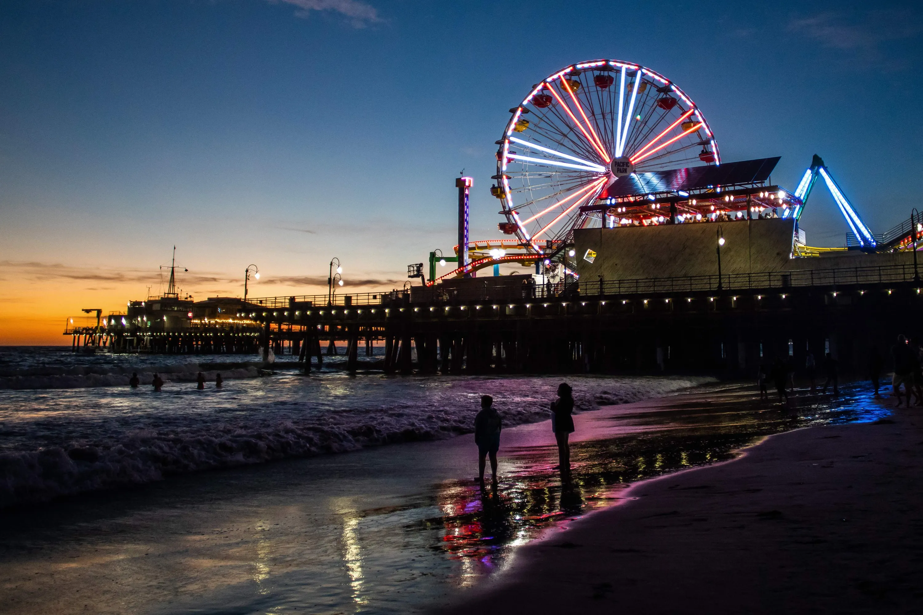 The Santa Monica Pier is pictured as the sun sets in Santa Monica, California on October 9, 2023. (Photo by Apu Gomes/AFP Photo)