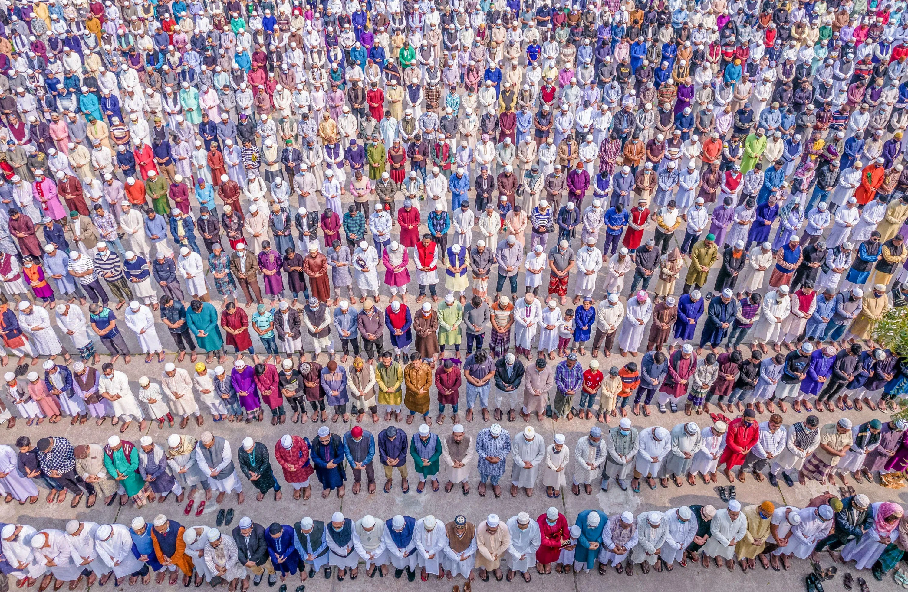 Aerial view shows People attending a Muslim Funeral of a person who lost the battle against Covid-19 disease in Barishal, Bangladesh on October 3, 2023. (Photo by Mustasinur Rahman Alvi/Alamy Live News)