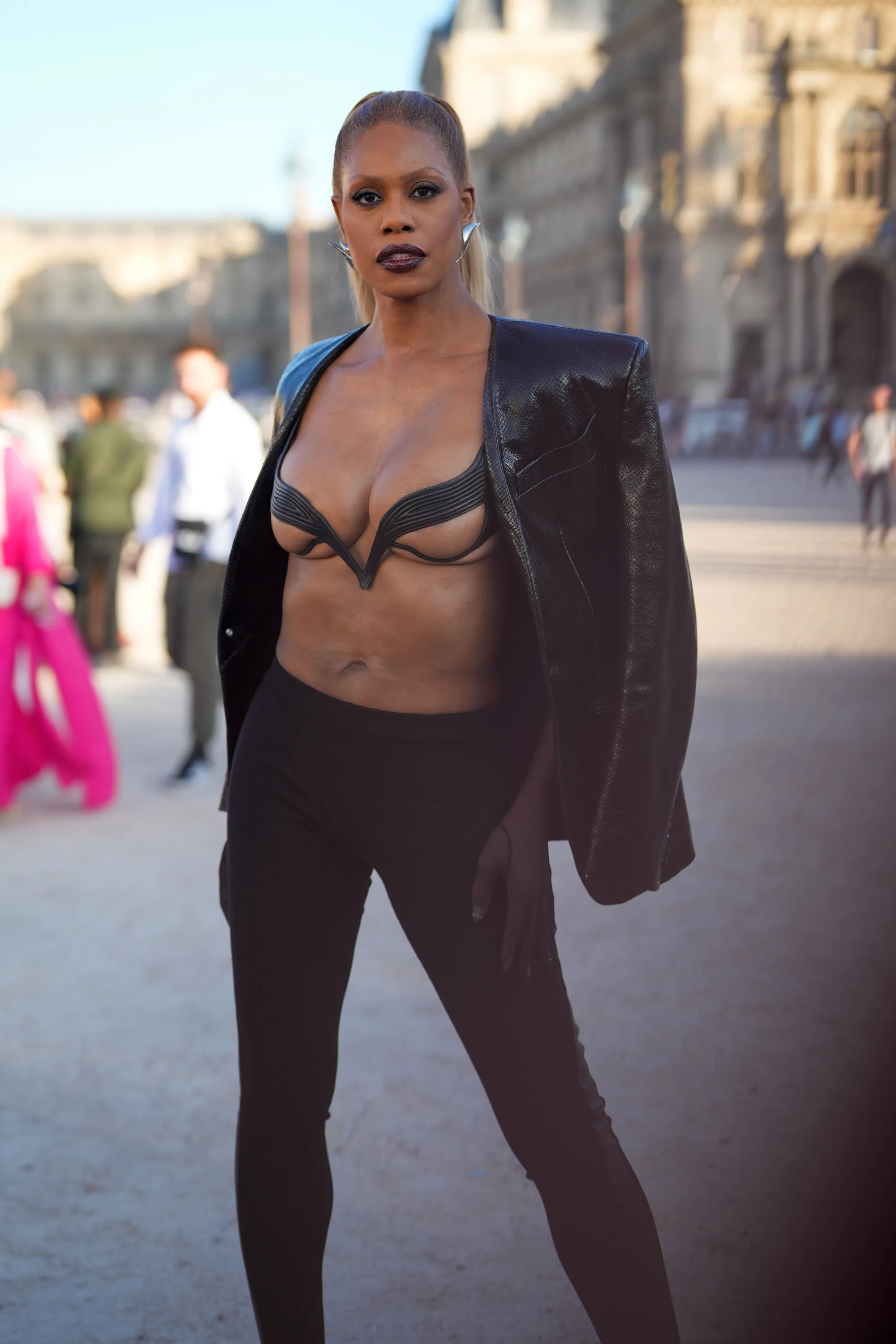 American actress Laverne Cox attends the Mugler SS24 show on October 02, 2023 in Paris, France. (Photo by Pichichipixx/Splash News and Pictures)