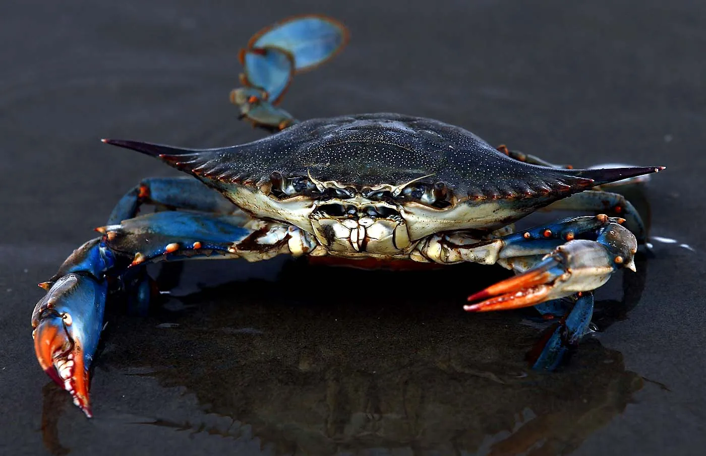 A crab caught on a line crawls along a recently reopened public beach in Grand Isle, Louisiana. (Photo by Win McNamee)