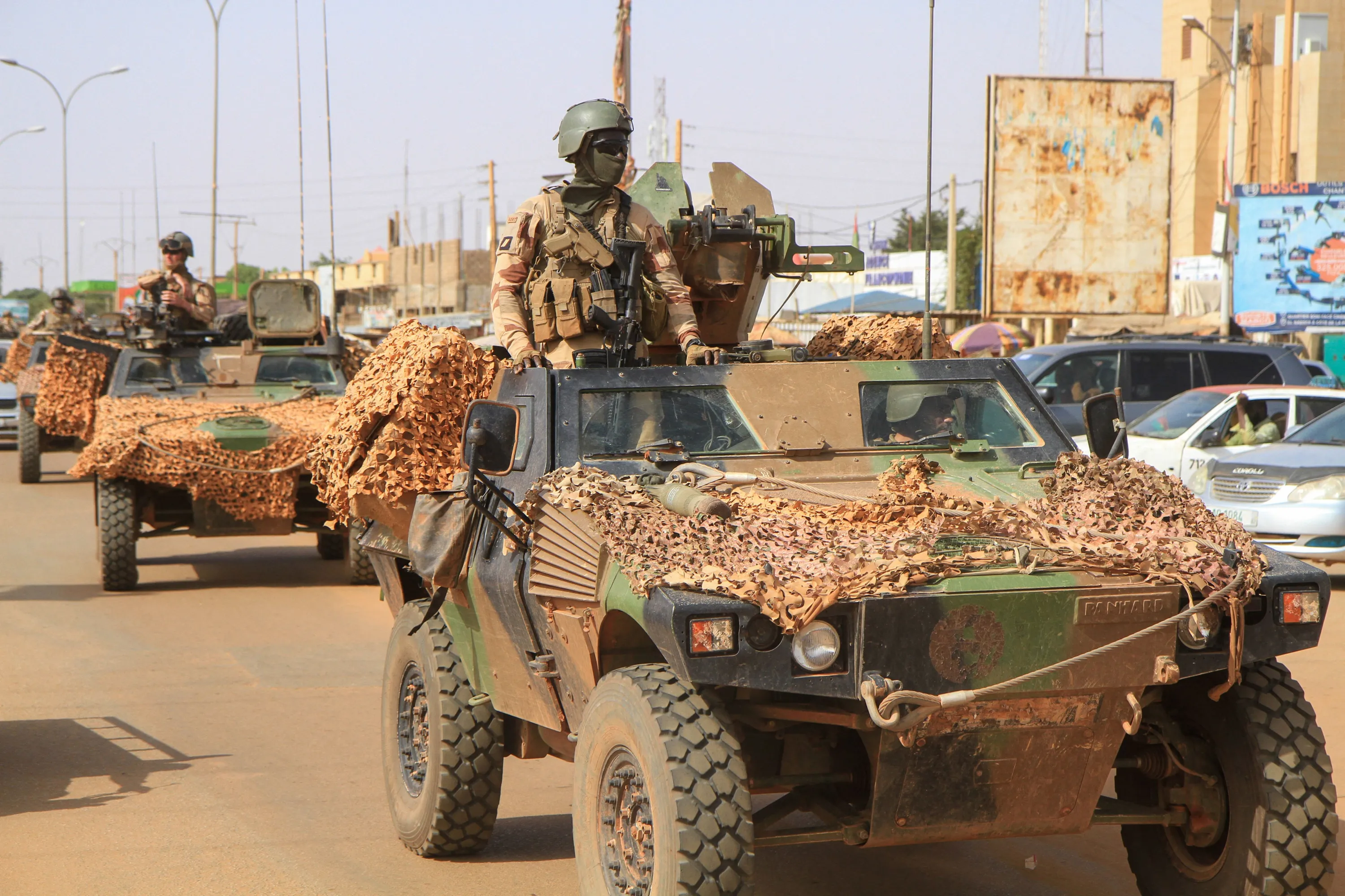 A convoy of French troops based in Niger drives by as they prepare to leave Niger, in Niamey on October 10, 2023. (Photo by Mahamadou Hamidou/Reuters)