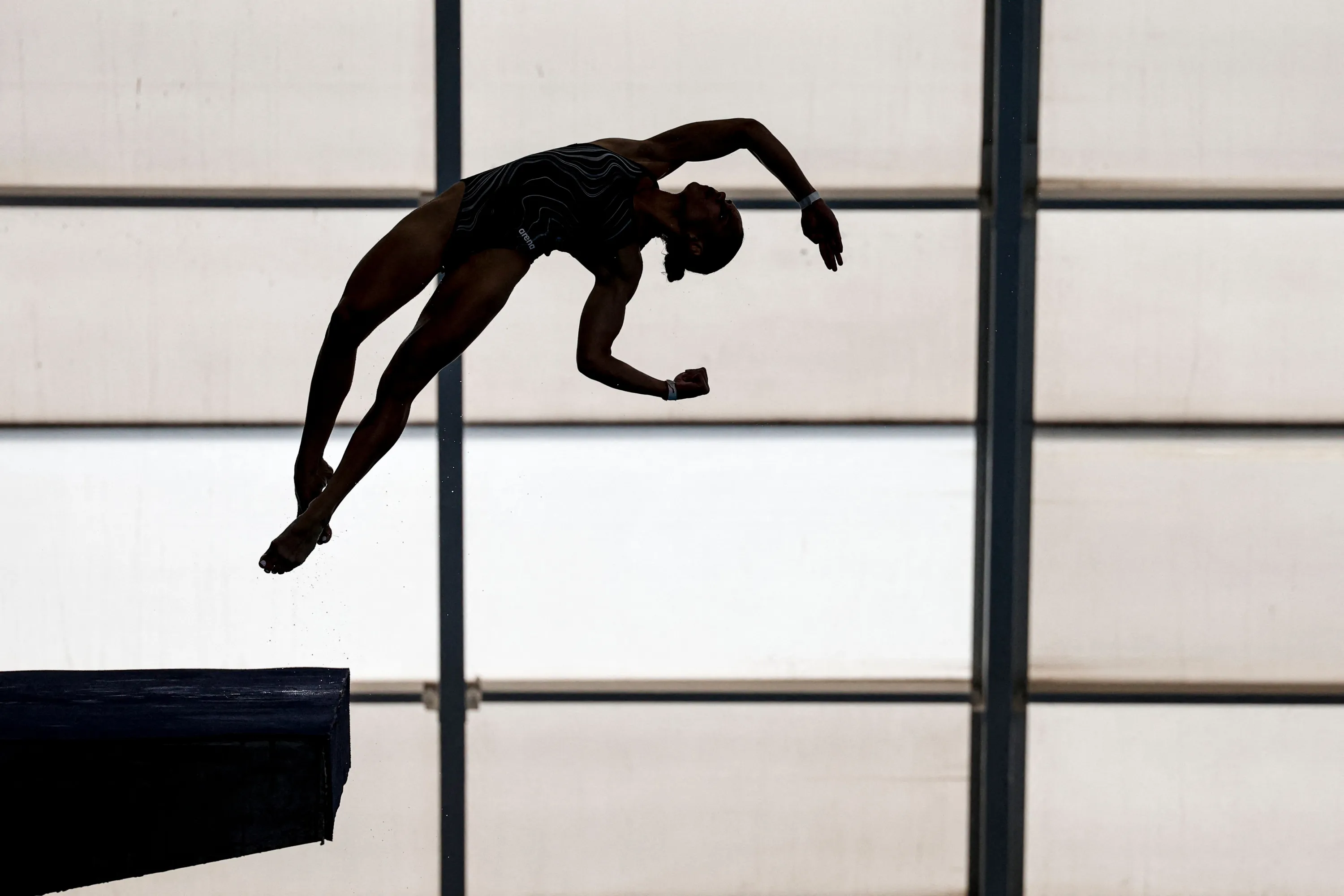 A diver trains in the swimming pool at the Aquatics Centre in the National Stadium Sports Park, in Santiago on October 18, 2023, ahead of the Pan American Games Santiago 2023. The Pan-American Games will run from October 20 to November 5. (Photo by Martin Bernetti/AFP Photo)