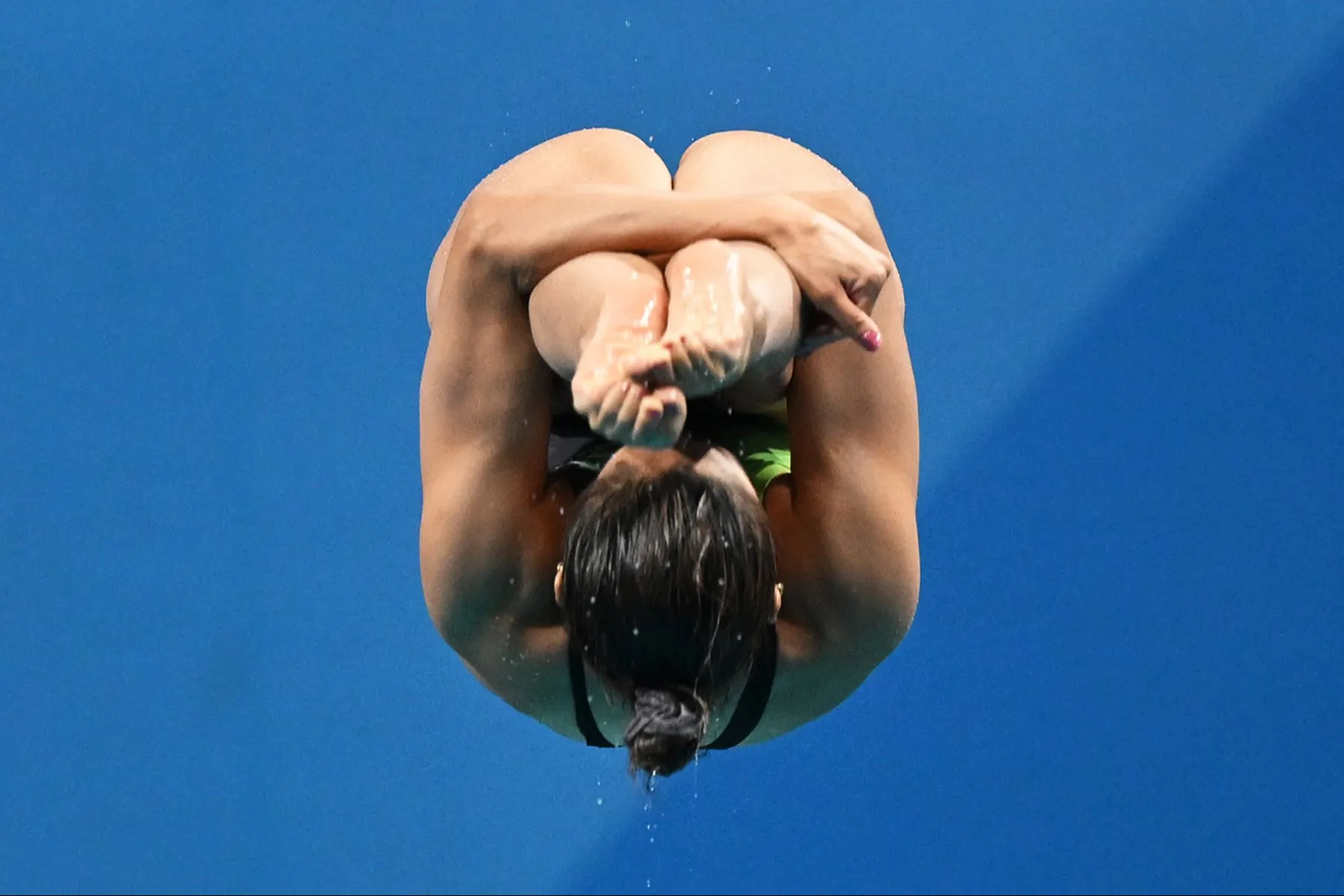 Mexico's Arantxa Chavez competes during the women's 1m platform springboard diving event of the Pan American Games Santiago 2023, at the Aquatics Centre in the National Stadium Sports Park in Santiago, on October 22, 2023. (Photo by Raul Arboleda/AFP Photo)