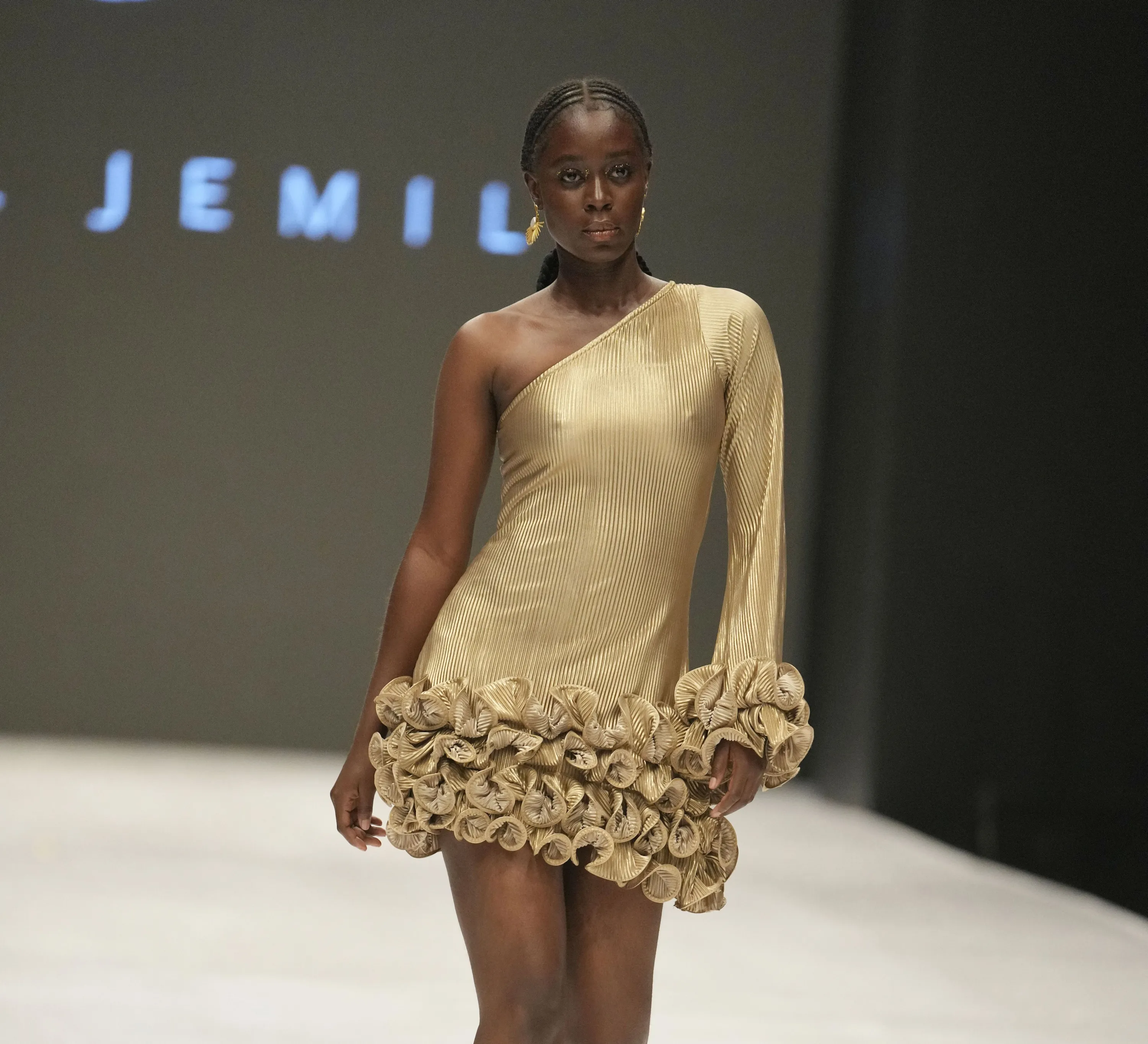 A model wears a creation by Jewel Jemila during the Lagos Fashion Week in Lagos, Nigeria, Thursday, October 26, 2023. (Photo by Sunday Alamba/AP Photo)