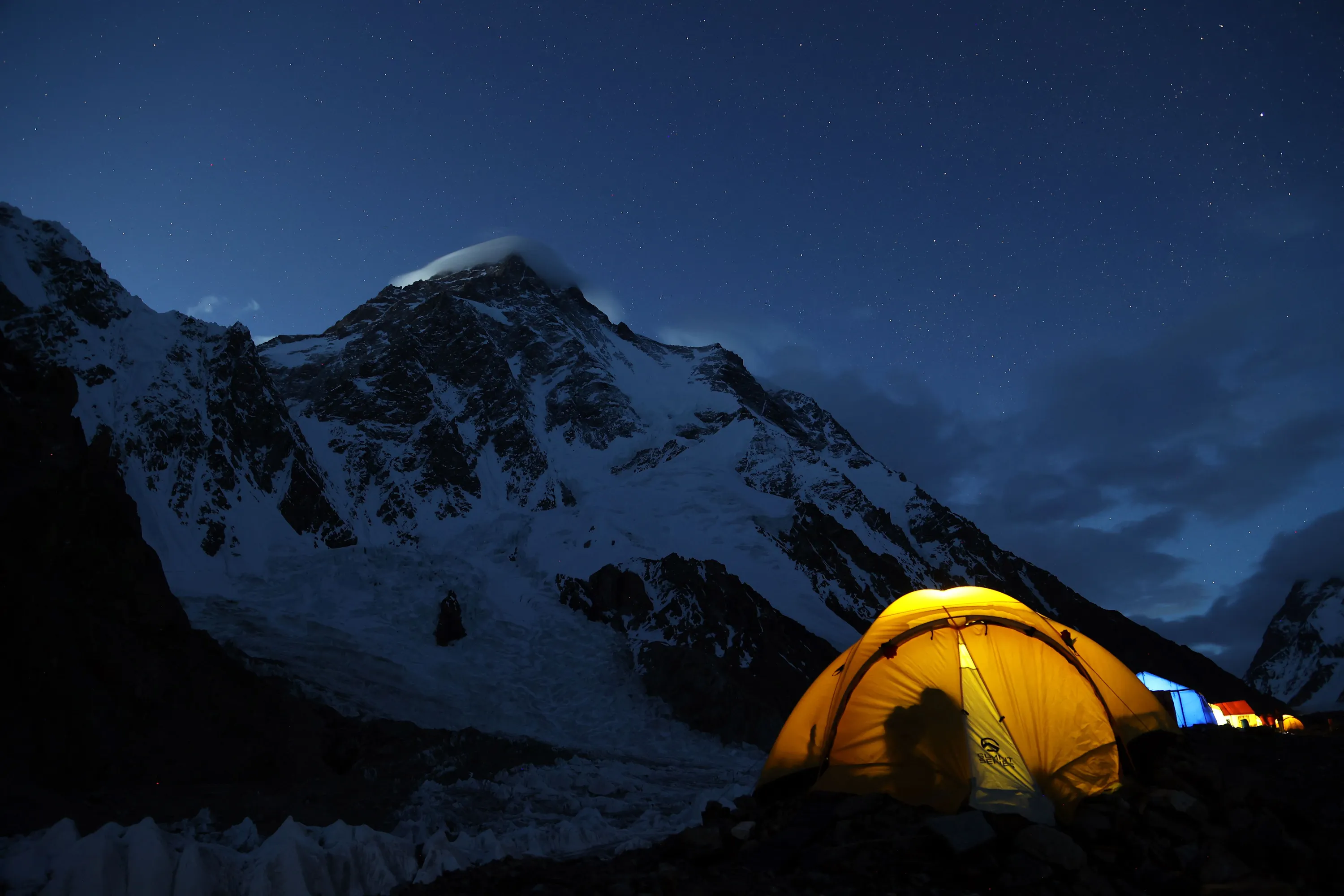 This picture taken on July 15, 2023 shows a view of K2, world's second tallest mountain from its base camp in the Karakoram range of GilgitBaltistan, Pakistan. (Photo by Joe Stenson/AFP Photo)