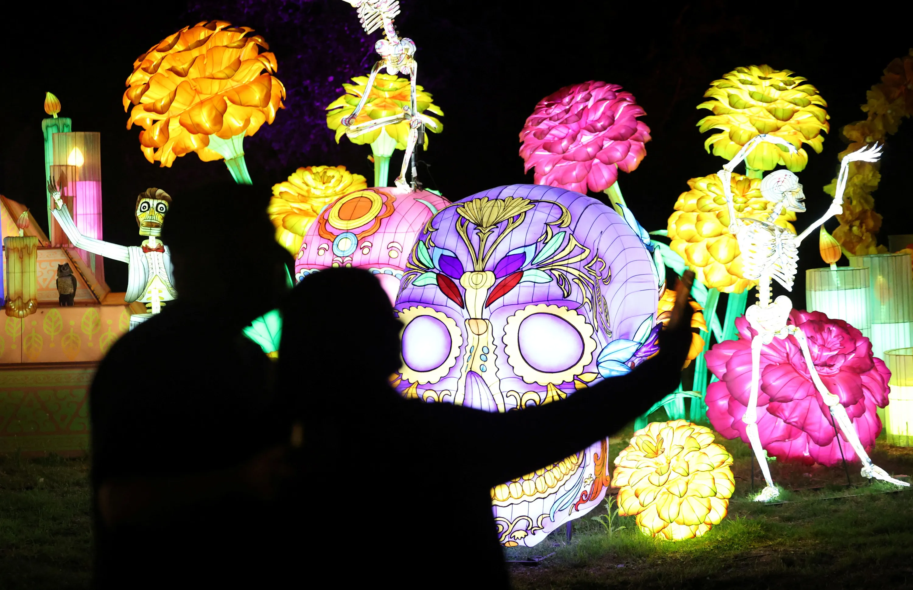 Visitors take a selfie at Nights of the Jack, an immersive Halloween experience, at the King Gillette Ranch in Calabasas, California, U.S., October 23, 2023. (Photo by Mario Anzuoni/Reuters)
