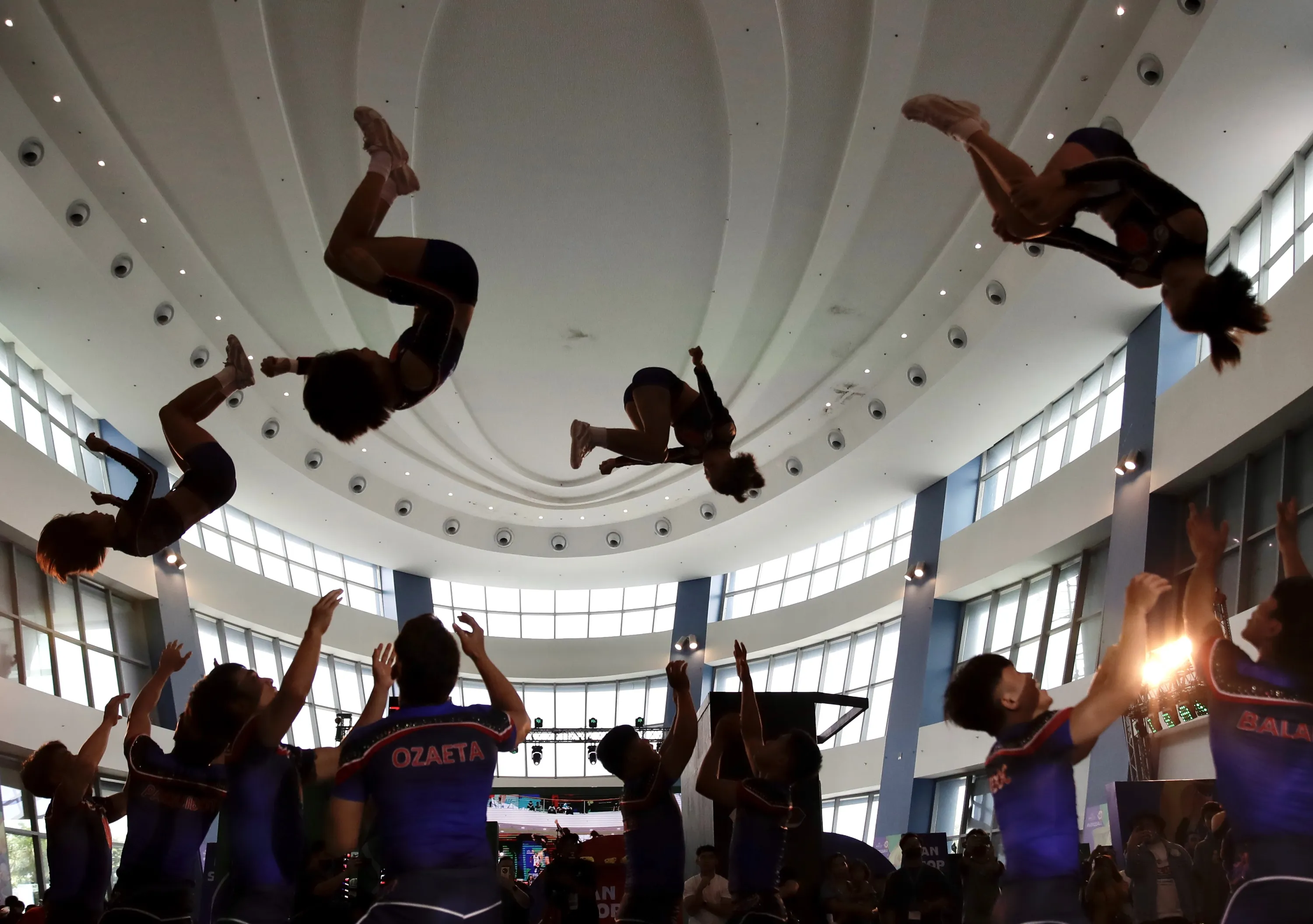 Dancers perform on the opening day of the FIBA Basketball World Cup outside the Mall of Asia arena in Manila, Philippines, 25 August 2023. Philippines, Japan and Indonesia will co-host the FIBA Basketball World Cup qualifying games in the early stages and will converge in Manila for the final phase. (Photo by Francis R. Malasig/EPA)