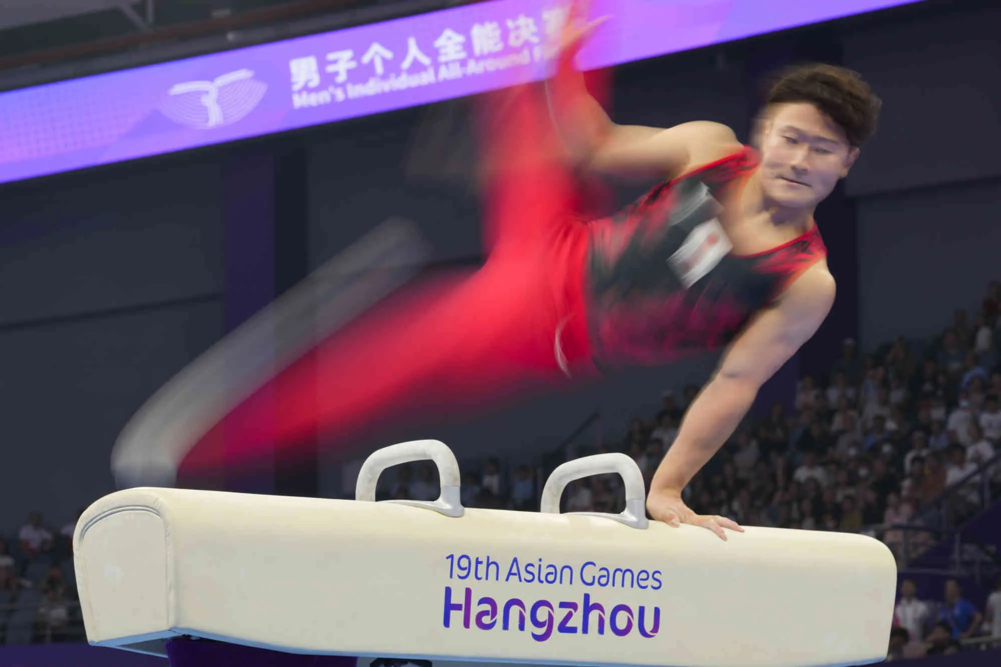 Takeru Kitazono of Japan competes on the pommel horse during the men's all-around individuals gymnastics event of the 19th Asian Games in Hangzhou, China, Tuesday, September 26, 2023. Kitazono won bronze medal. (Photo by Aaron Favila/AP Photo)