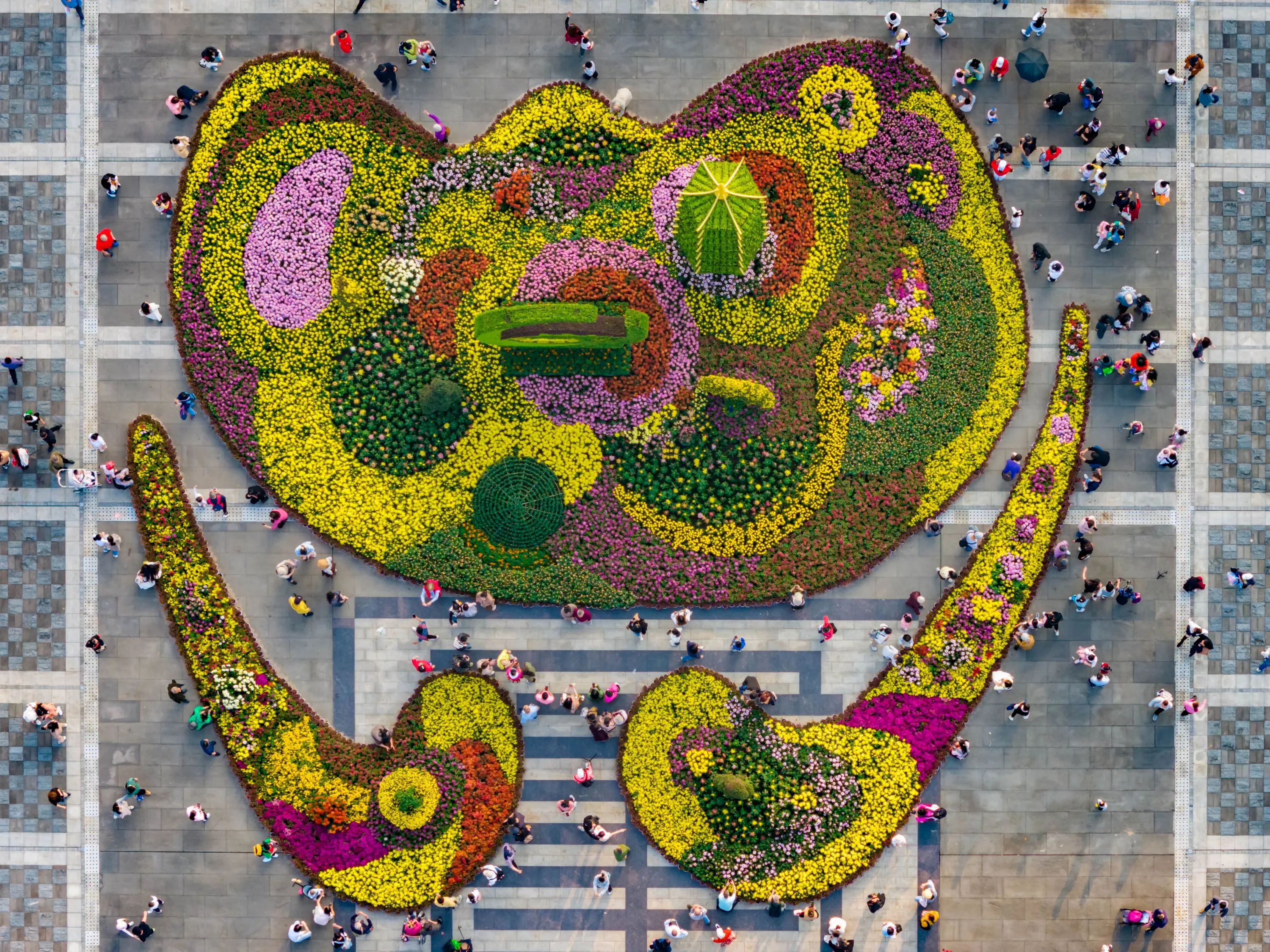 Aerial photo shows tourists playing at the Garden Expo in Chongqing, China on October 29, 2023. (Photo by Costfoto/NurPhoto/Rex Features/Shutterstock)