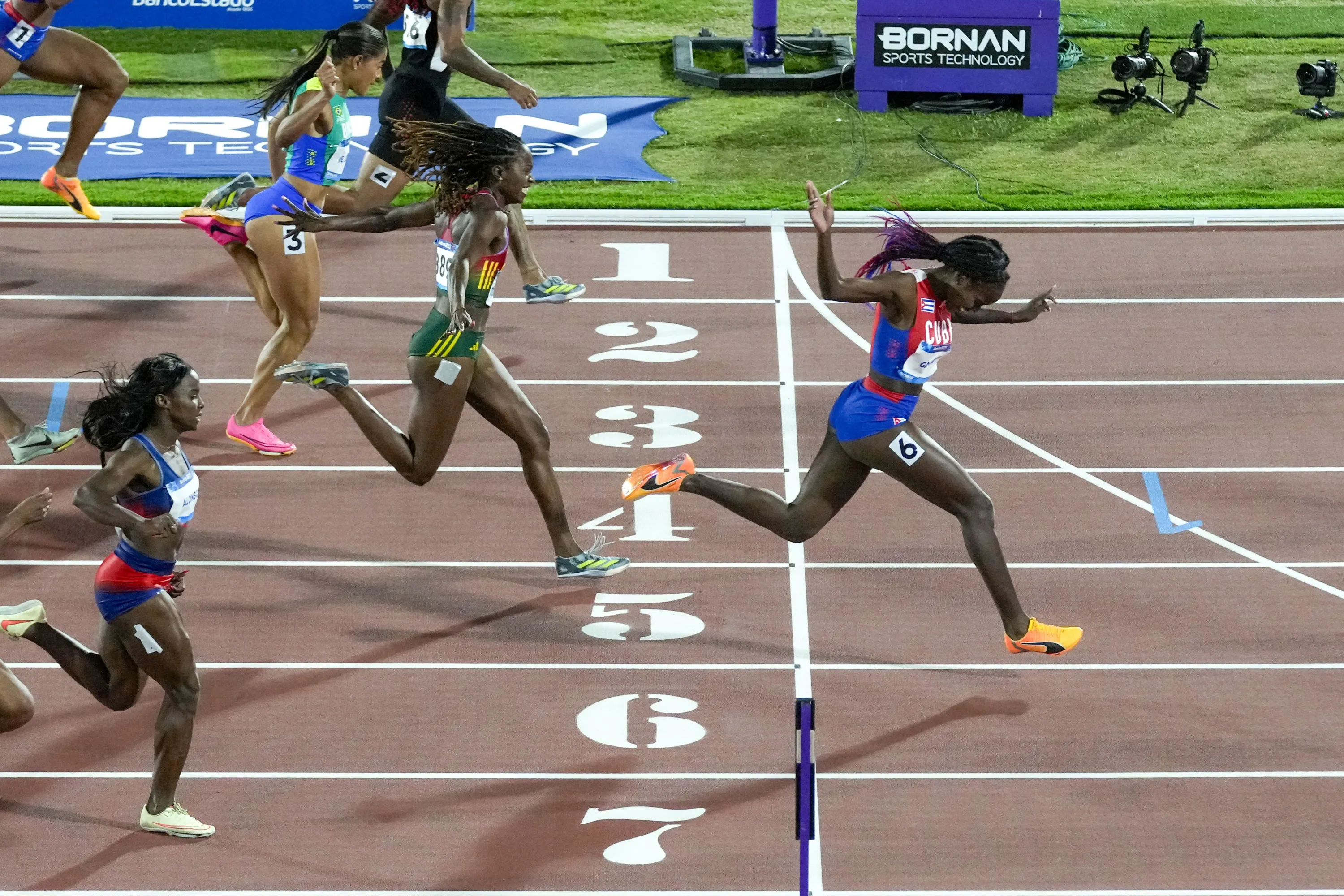 Cuba's Yunisleidy Garcia wins the gold medal in the women's 100-meter final at the Pan American Games in Santiago, Chile, Tuesday, October 31, 2023. (Photo by Moises Castillo/AP Photo)