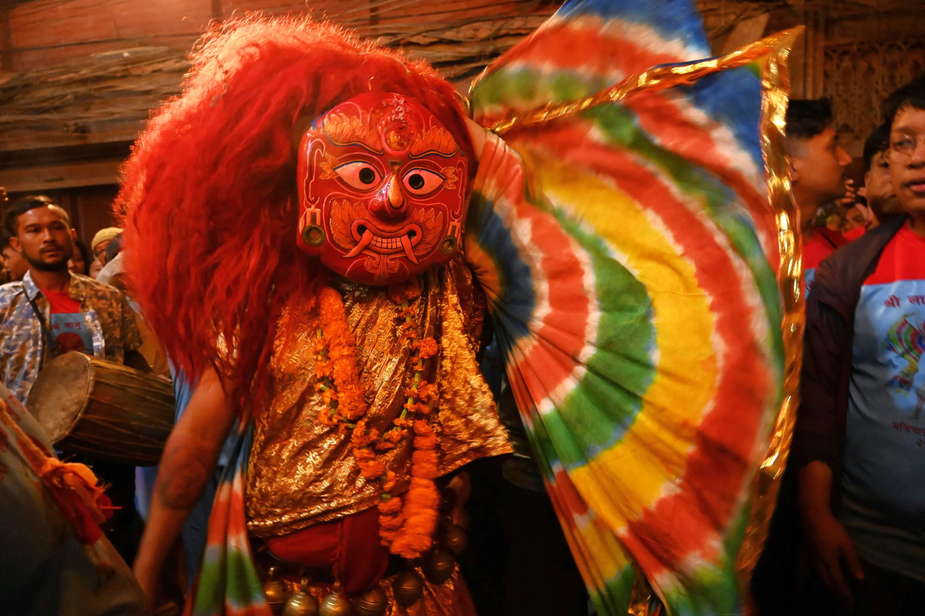 A mask dancer locally known as “Lakhey” performs on the last day of the “Indra Jatra” festival in Kathmandu, on October 2, 2023. (Photo by Prakash Mathema/AFP Photo)
