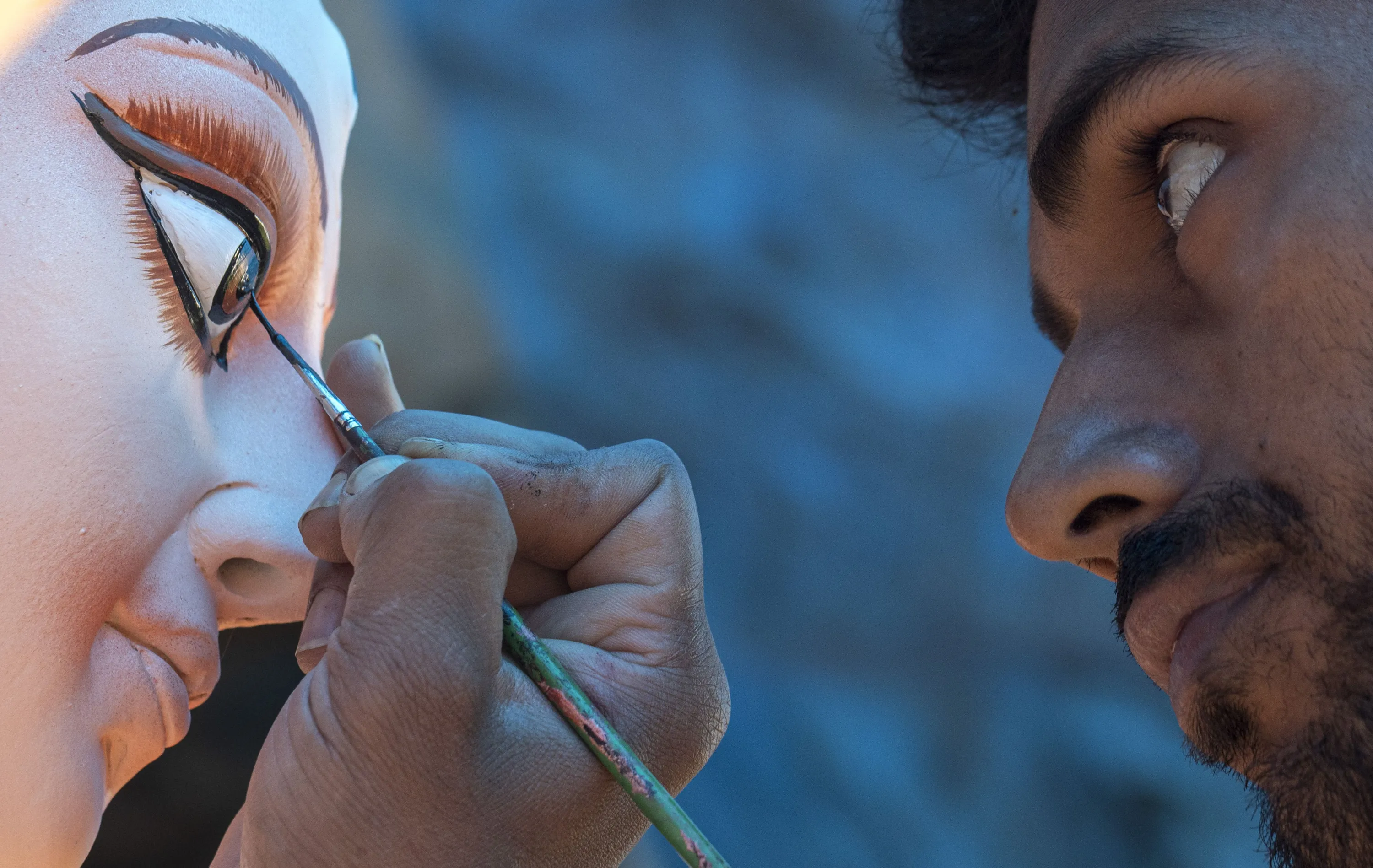 Nepalese artist Ravi Kumar Pandit puts final touches on an idol of the Hindu goddess Durga, the mother of Power and Prosperity, for the upcoming Dashain festival in Kathmandu, Nepal, 12 October 2023. The Durga idol is widely worshipped by Nepalese people during the Dashain festival which will start on 15 October 2023. Dashain commemorates a victory of the gods over the wicked demons and is considered the longest and the most auspicious festival. (Photo by Narendra Shrestha/EPA)