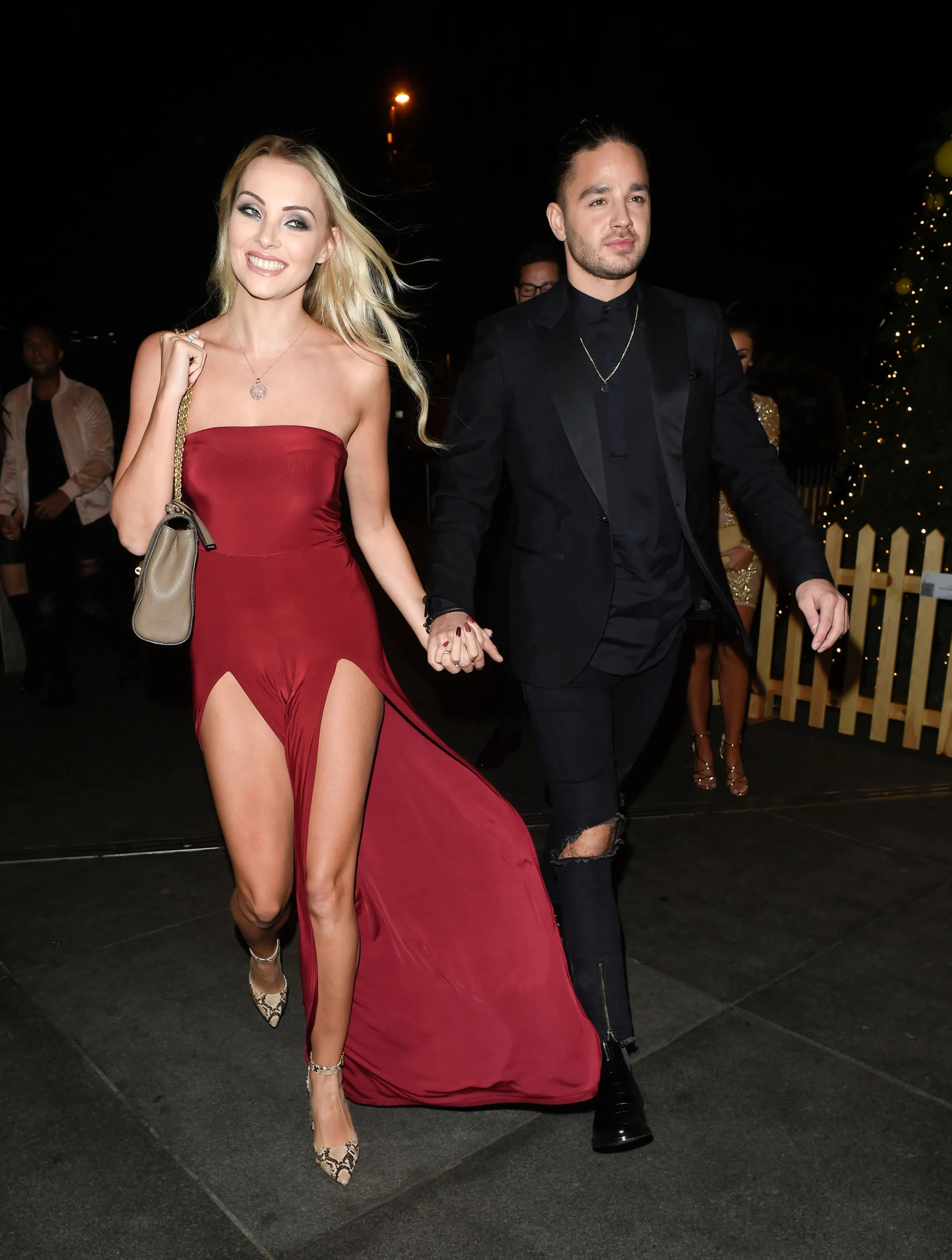 English actor Adam Thomas and Internet personality Caroline Daly at the Australasia restaurant for New Year celebrations in Manchester, UK on December 31, 2016. (Photo by Xposure)