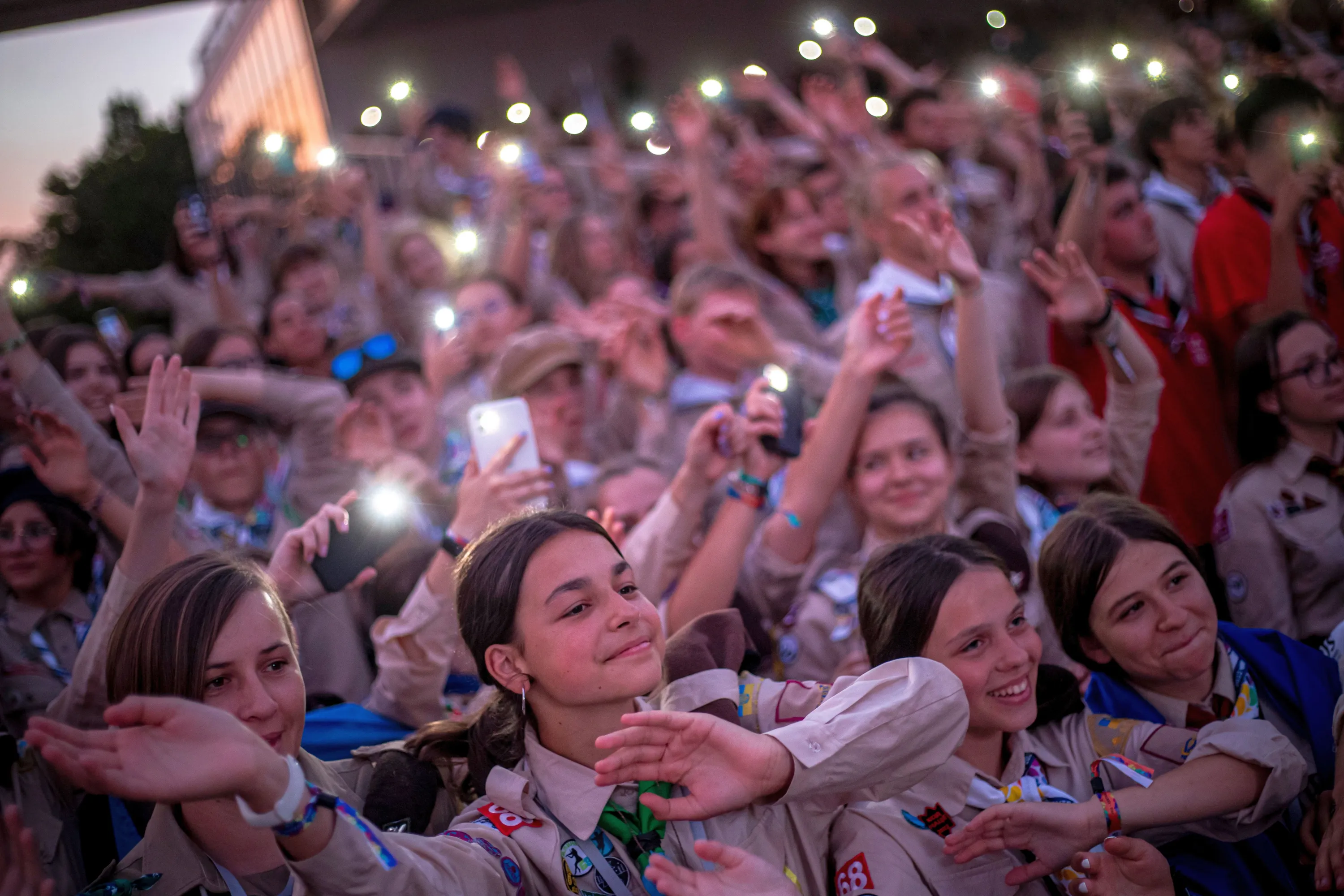 Scouts take part in opening of the Central European Jamboree in Prague, Czech Republic, 02 August 2022. Over 1200 scouts from many countries around the world, mainly the Czech Republic, Hungary, Slovakia, Poland, Spain, Austria, Romania, and Israel gather for a ten-day meeting of Scout teenagers in Czech capital. Fifty participants will also come from Ukraine, their participation made possible by donor funding. (Photo by Martin Divísek/EPA/EFE)