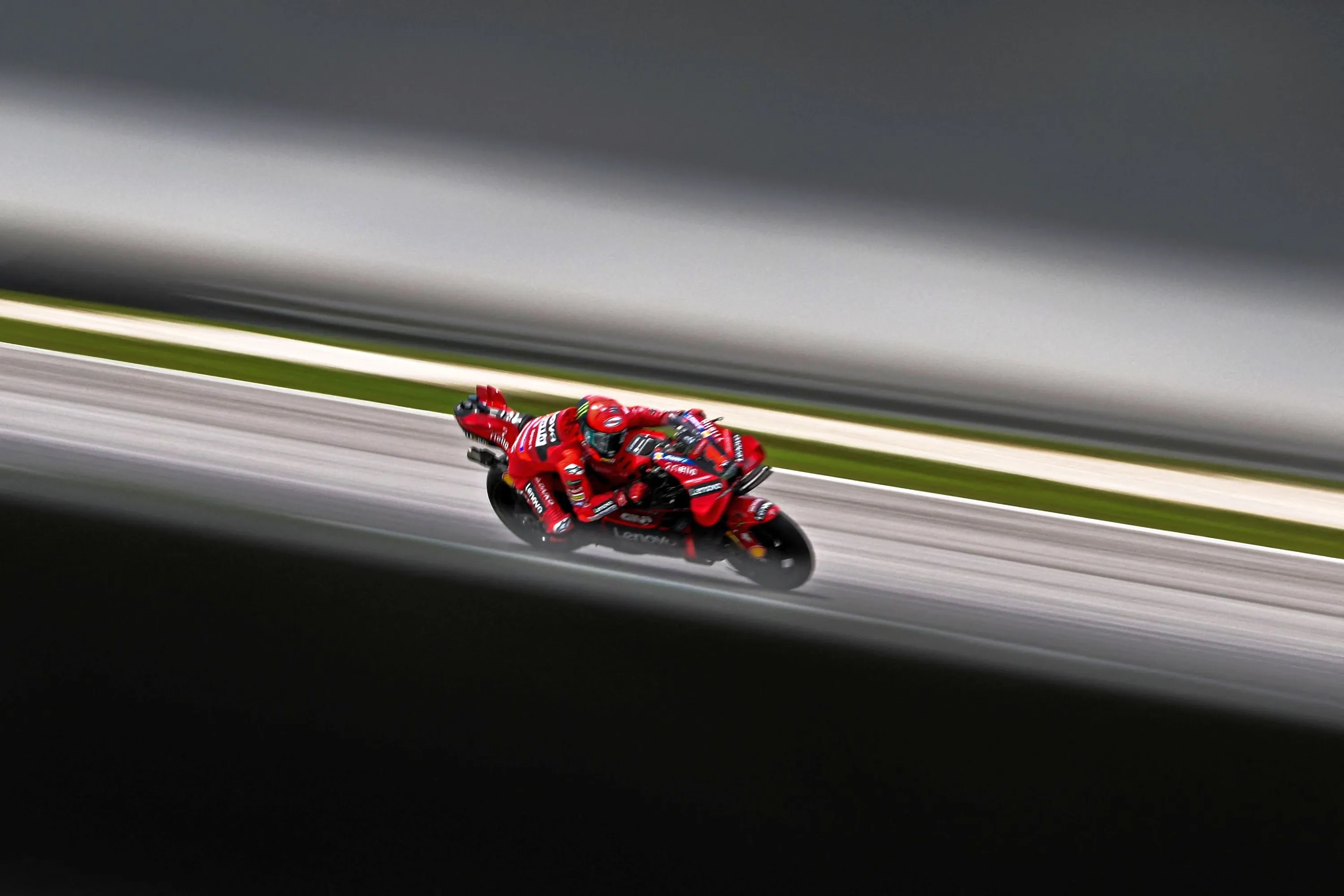 Ducati Lenovo Team's Italian rider Francesco Bagnaia steers his bike during the first practice session of the MotoGP Malaysian Grand Prix at the Sepang International Circuit in Sepang on November 10, 2023. (Photo by Mohd Rasfan/AFP Photo)